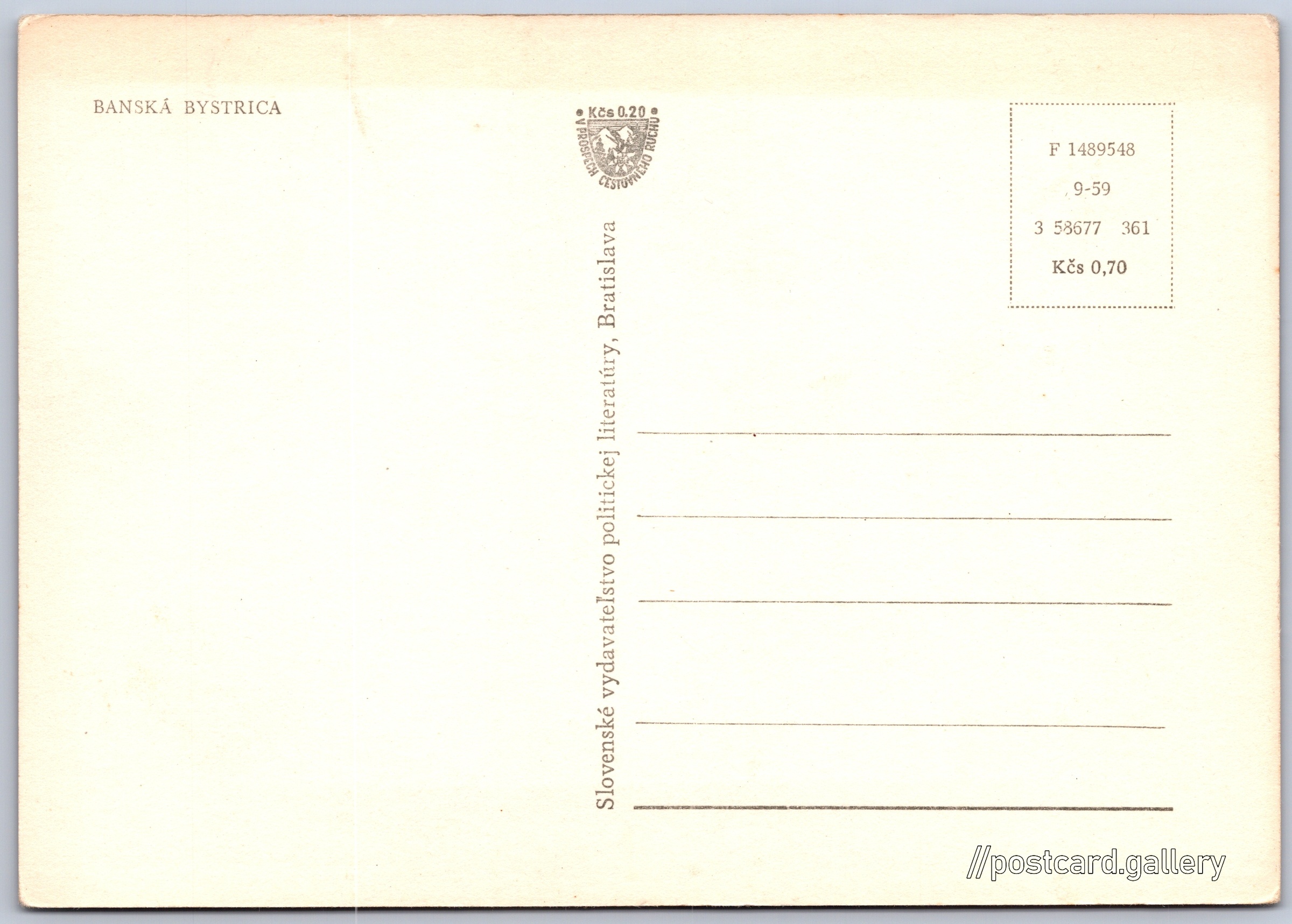 Postcard price: 0,70 Kčs (CSK) (+0,20 Kčs fee to support tourism)