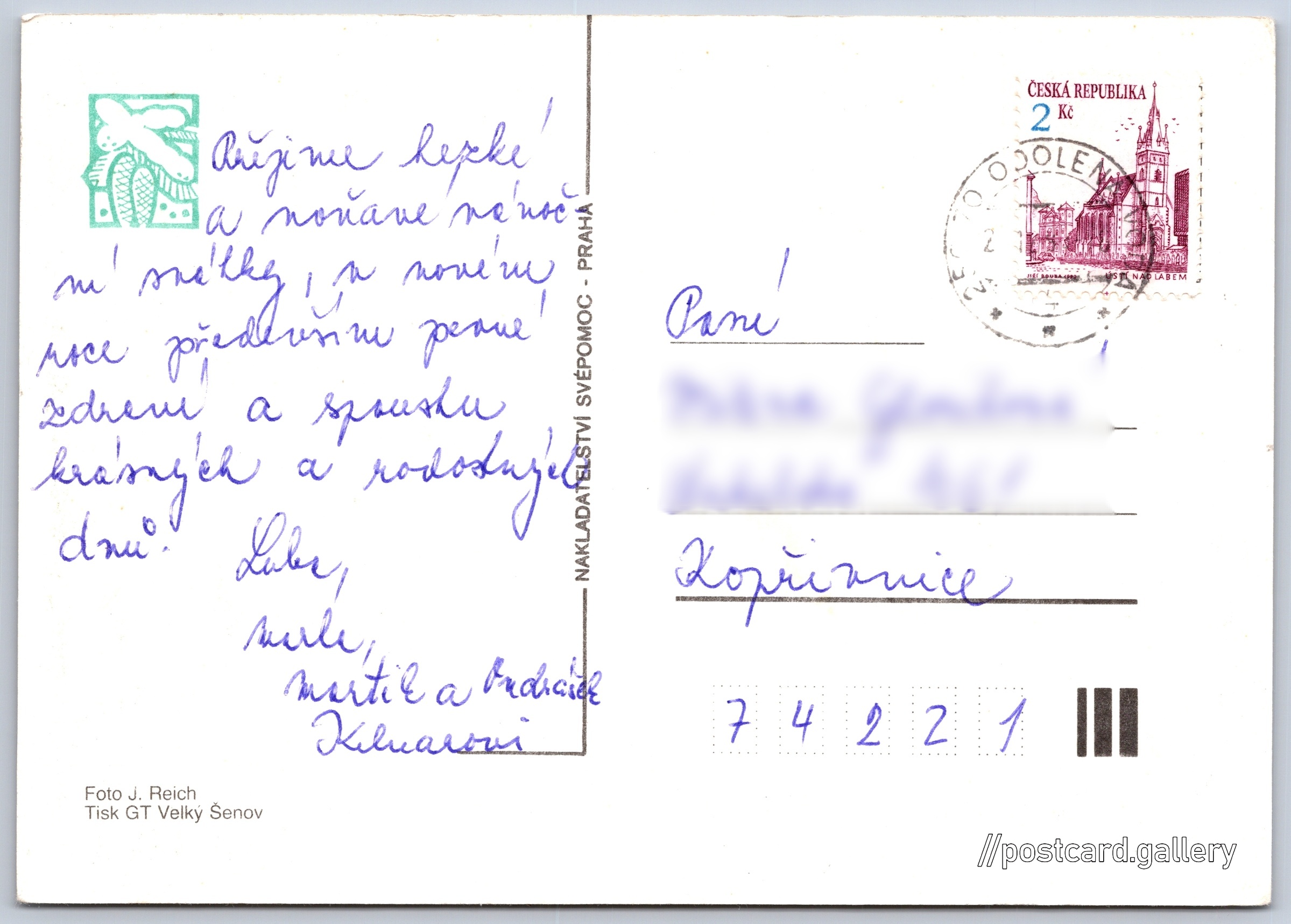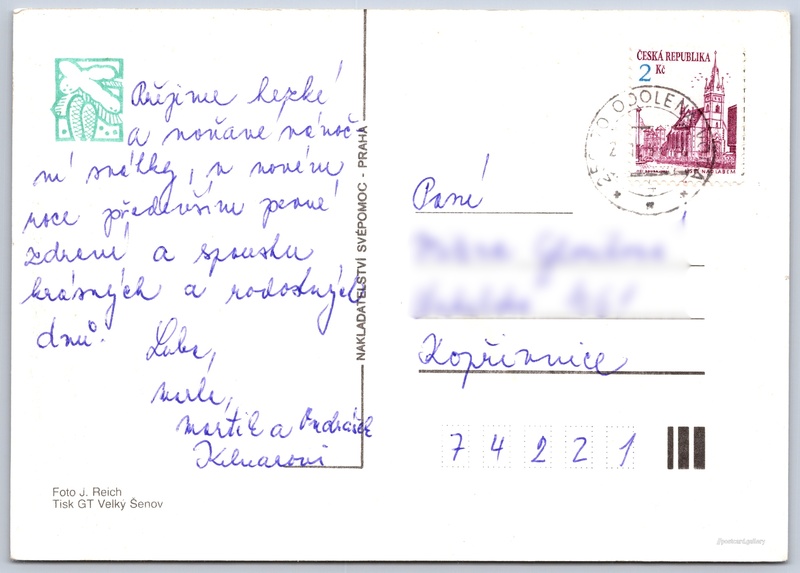 Christmas card Pokud chcete vidět pohlednice ve vyšším rozlišení nebo zobrazovat jejich zadní stranu, tak se prosím nejdříve přihlašte Log in Register Language of printed text on postcard: Czech Publisher: Nakladatelství Svépomoc, Praha (Czechoslovakia) Issue date of postcard is not known Help us estimate date of postcard publishing Postcard size (w x h) and shape: 148 x 105 mm (5.83" x 4.13"), rectangle Persons connected with this postcard: Jan Reich(Photo author) Used postcard Prices: Paid stamps: 2,00 Kč (CZK) DiscussionAdd post Add new folder ... Manage folders ...