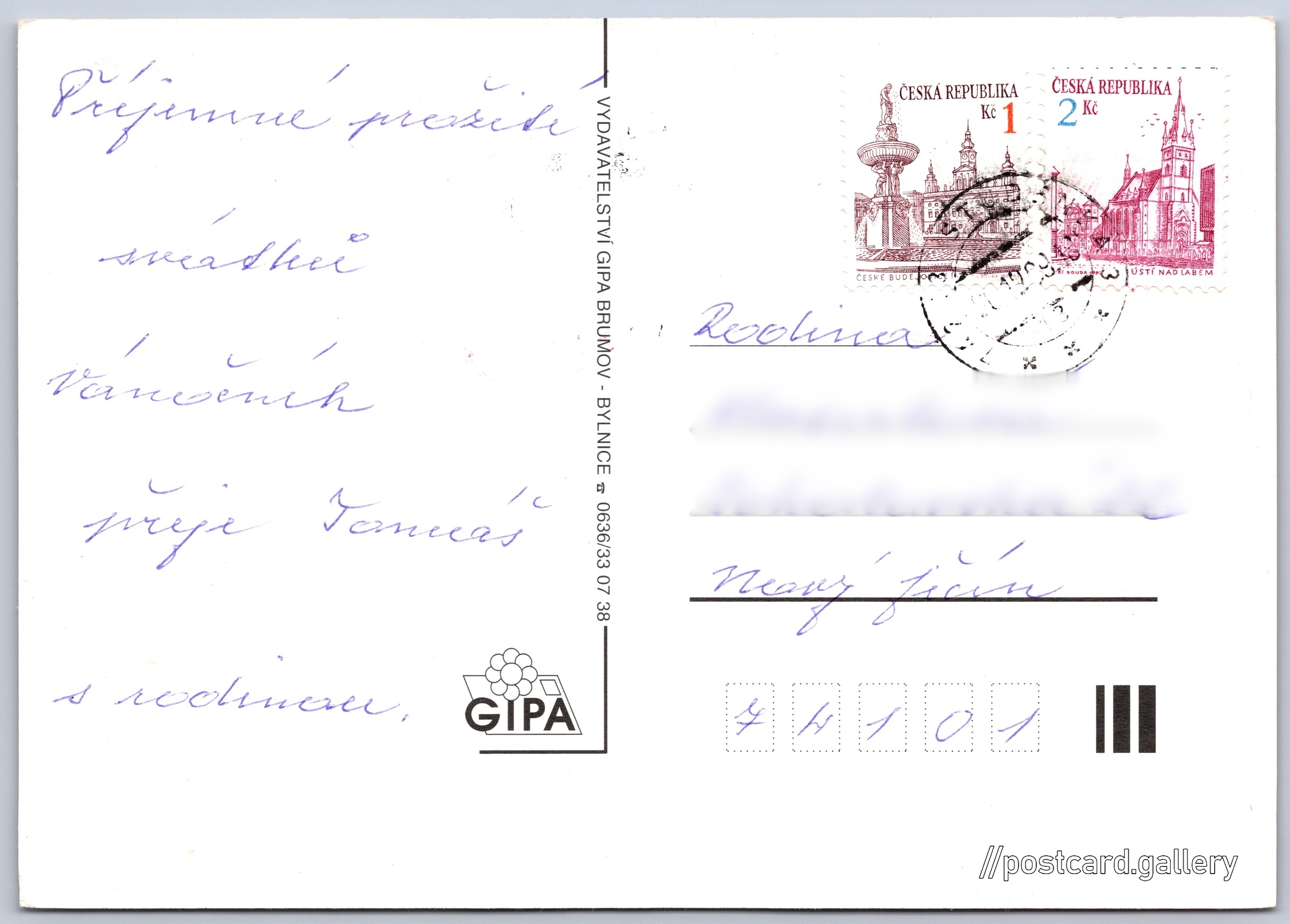 Christmas cards, cartoon Pokud chcete vidět pohlednice ve vyšším rozlišení nebo zobrazovat jejich zadní stranu, tak se prosím nejdříve přihlašte Log in Register Language of printed text on postcard: Czech Publisher: GIPA (Czechia) Estimated issue date of postcard: 1996 - 1999 Help us specify date of postcard publishing Postcard size (w x h) and shape: 147 x 105 mm (5.79" x 4.13"), rectangle Used postcard:Stamp date: 20.12.1999 Prices: Paid stamps: 3,00 Kč (CZK) DiscussionAdd post Add new folder ... Manage folders ...
