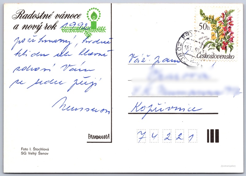 Christmas cards, sliced apples, nuts Pokud chcete vidět pohlednice ve vyšším rozlišení nebo zobrazovat jejich zadní stranu, tak se prosím nejdříve přihlašte Log in Register Radostné vánoce a nový rok Language of printed text on postcard: Czech Publisher: Panorama (Czechoslovakia) Estimated issue date of postcard: 1988 - 1991 Help us specify date of postcard publishing Postcard size (w x h) and shape: 147 x 103 mm (5.79" x 4.06"), rectangle Persons connected with this postcard: Irena Štochlová(Photo author) Used postcard:Stamp date: 18.12.1991 Prices: Paid stamps: 0,50 Kčs (CSK) DiscussionAdd post Add new folder ... Manage folders ...