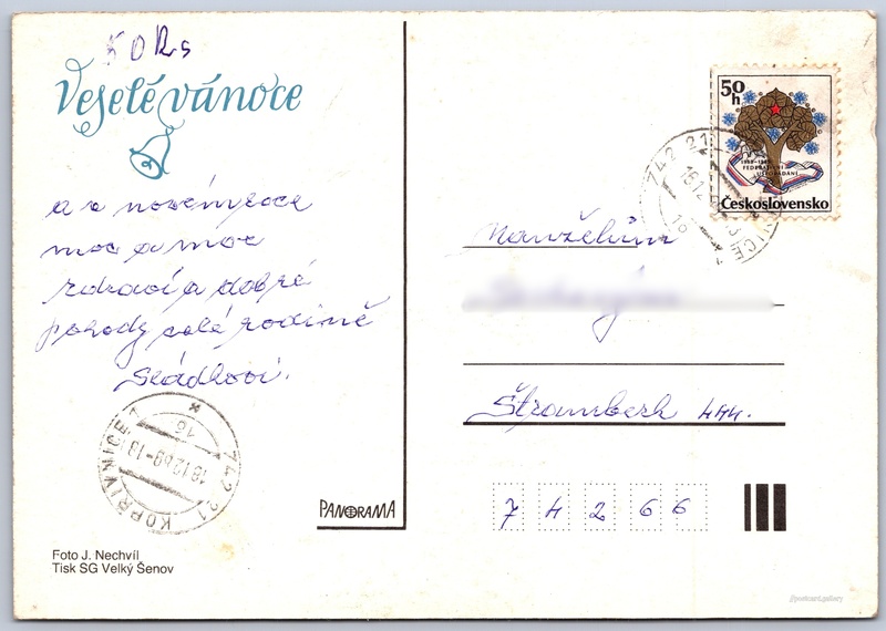 Language of printed text on postcard: