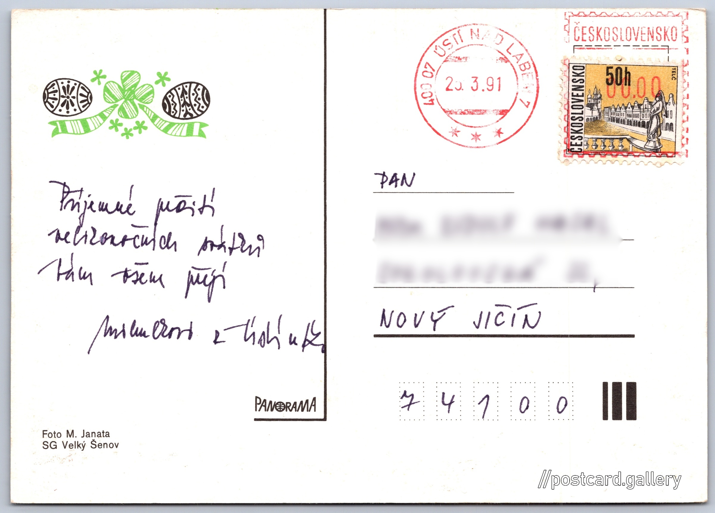 Language of printed text on postcard: