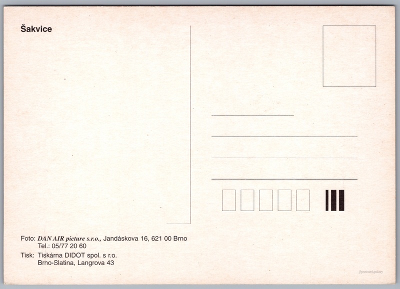 Greetings from Šakvice Pokud chcete vidět pohlednice ve vyšším rozlišení nebo zobrazovat jejich zadní stranu, tak se prosím nejdříve přihlašte Log in Register Pozdrav ze Šakvic Šakvice Language of printed text on postcard: Czech Šakvice, Obec, Česko show on map Issue date of postcard is not known Help us estimate date of postcard publishing Postcard size (w x h) and shape: 148 x 105 mm (5.83" x 4.13"), rectangle Unused postcard DiscussionAdd post Add new folder ... Manage folders ...