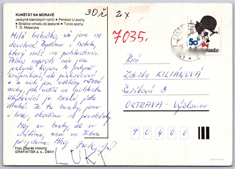 Kunštát na Moravě 2/3 Pokud chcete vidět pohlednice ve vyšším rozlišení nebo zobrazovat jejich zadní stranu, tak se prosím nejdříve přihlašte Log in Register Kunštát na Moravě KUNŠTÁT NA MORAVĚ- Jeskyně blanických rytířů- Pension U sochy- Strážce vchodu do jeskyně- Torzo sochy T. G. Masaryka Language of printed text on postcard: Czech Jeskyně Blanických rytířů, Jeskyně, Kunštát, Česko show on map Estimated issue date of postcard: 1989 - 1992 Help us specify date of postcard publishing Postcard size (w x h) and shape: 146 x 105 mm (5.75" x 4.13"), rectangle Persons connected with this postcard: Zdeněk Holomý(Photo author) Used postcard:Stamp date: 20.7.1992 Prices: Paid stamps: 0,50 Kčs (CSK) DiscussionAdd post Add new folder ... Manage folders ...