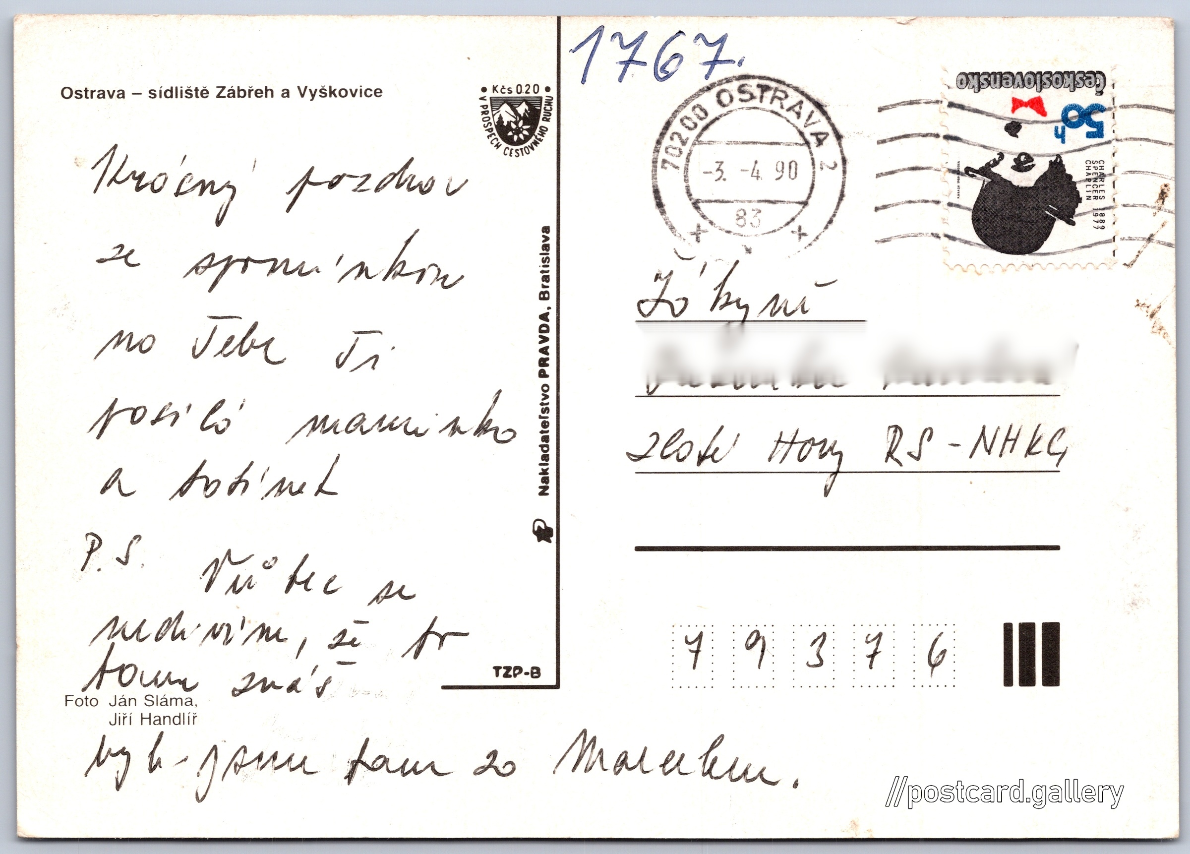 Ostrava Zábřeh, Výškovice Pokud chcete vidět pohlednice ve vyšším rozlišení nebo zobrazovat jejich zadní stranu, tak se prosím nejdříve přihlašte Log in Register Zábřeh - Výškovice Ostrava - sídliště Zábřeh a Vyškovice Language of printed text on postcard: Czech Ostrava-Jih, Ostrava, Ostrava-město show on map Publisher: Nakladateľstvo PRAVDA, Bratislava (Czechoslovakia) Estimated issue date of postcard: 1987 - 1990 Help us specify date of postcard publishing Postcard size (w x h) and shape: 146 x 106 mm (5.75" x 4.17"), rectangle Persons connected with this postcard: Ján Sláma(Photo author) Jiří Handlíř(Photo author) Used postcard:Stamp date: 3.4.1990 Prices: Fee to support turism: 0,20 Kčs (CSK)Paid stamps: 0,50 Kčs (CSK) DiscussionAdd post Add new folder ... Manage folders ...