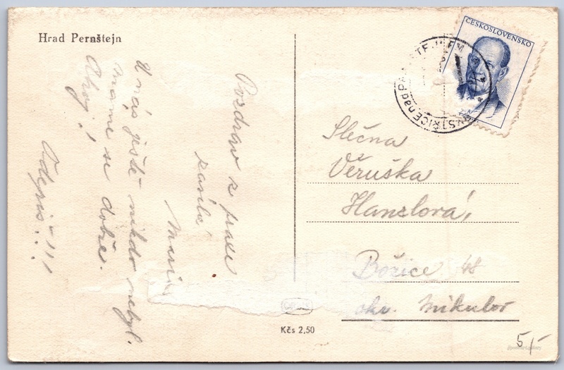 Pernštejn Castle Pokud chcete vidět pohlednice ve vyšším rozlišení nebo zobrazovat jejich zadní stranu, tak se prosím nejdříve přihlašte Log in Register Hrad Pernštejn Language of printed text on postcard: Czech Hrad Pernštejn, Hrad, Pernštejn 13, Nedvědice - Pernštejn, Česko show on map Publisher: Nakladatelství Orbis (Czechoslovakia) Estimated issue date of postcard: 1950 - 1953 Help us specify date of postcard publishing Postcard size (w x h) and shape: 138 x 90 mm (5.43" x 3.54"), rectangle Used postcard Prices: Postcard price: 2,50 Kčs (CSK) DiscussionAdd post Add new folder ... Manage folders ...