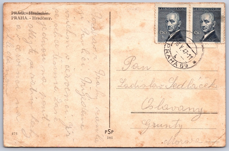 Prague, Hradcany Pokud chcete vidět pohlednice ve vyšším rozlišení nebo zobrazovat jejich zadní stranu, tak se prosím nejdříve přihlašte Log in Register PRAG. - Hradschin.PRAHA. - Hradčany. Language of printed text on postcard: Czech Pražský hrad, Hrad, Hrad III. nádvoří, Praha, Česko show on map 159 other postcards can be found in the immediate vicinity of the place shown on the postcard Show near postcards Estimated issue date of postcard: 1942 - 1945 Help us specify date of postcard publishing Postcard size (w x h) and shape: 138 x 90 mm (5.43" x 3.54"), rectangle Used postcard:Stamp date: 16.5.1947 Prices: Paid stamps: 1,20 Kčs (CSK) Postcard codes: 473 101 DiscussionAdd post Add new folder ... Manage folders ...