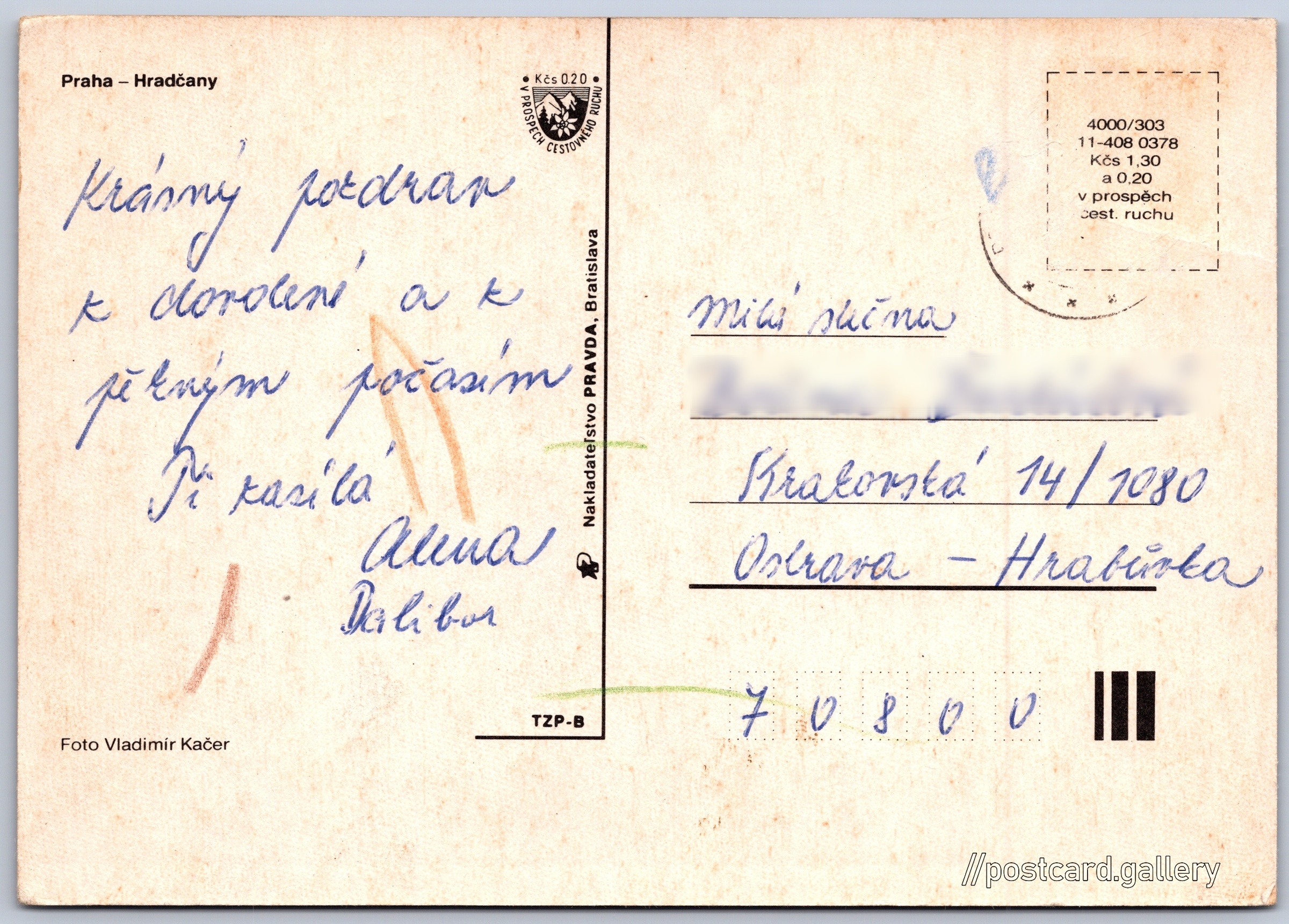 Postcard price: 1,30 Kčs (CSK) (+0,20 Kčs fee to support tourism)