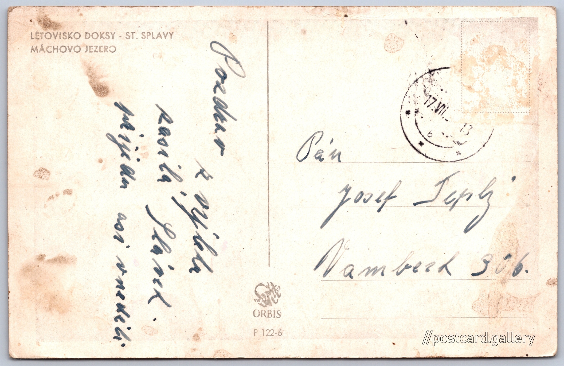 Resort Doksy, Staré splavy Pokud chcete vidět pohlednice ve vyšším rozlišení nebo zobrazovat jejich zadní stranu, tak se prosím nejdříve přihlašte Log in Register LETOVISKO DOKSY - ST. SPLAVYMÁCHOVO JEZERO Language of printed text on postcard: Czech Pobřežní, Doksy, Česká Lípa show on map The exact location is unknown. If you know it, please write it in the comments or mark it on the map Publisher: Nakladatelství Orbis (Czechoslovakia) Issue date of postcard is not known Help us estimate date of postcard publishing Postcard size (w x h) and shape: 140 x 90 mm (5.51" x 3.54"), rectangle Used postcard Postcard codes: P 122-6 DiscussionAdd post Add new folder ... Manage folders ...