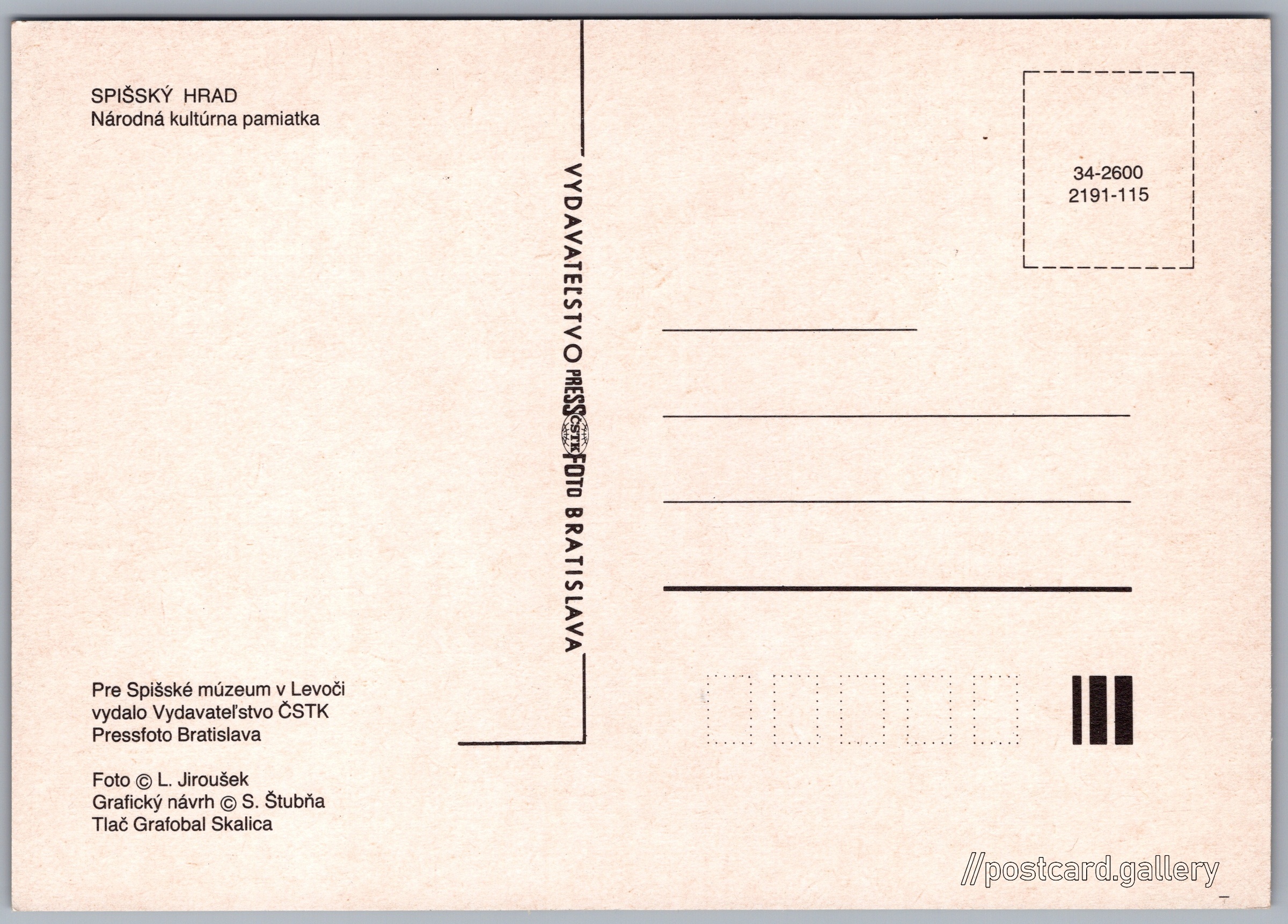 Spiš Castle Pokud chcete vidět pohlednice ve vyšším rozlišení nebo zobrazovat jejich zadní stranu, tak se prosím nejdříve přihlašte Log in Register SPIŠSKÝ HRADNárodná kultúrna pamiatka Language of printed text on postcard: Slovak Spišský hrad, Hrad, Žehra, Slovensko show on map Publisher: PressFoto Bratislava (Czechoslovakia) Issue year of postcard: 1991 Postcard size (w x h) and shape: 149 x 104 mm (5.87" x 4.09"), rectangle Persons connected with this postcard: S. Štubňa(Postcard designer) Ladislav Jiroušek(Photo author) Unused postcard Postcard codes: 34-2600 2191-115 DiscussionAdd post Add new folder ... Manage folders ...