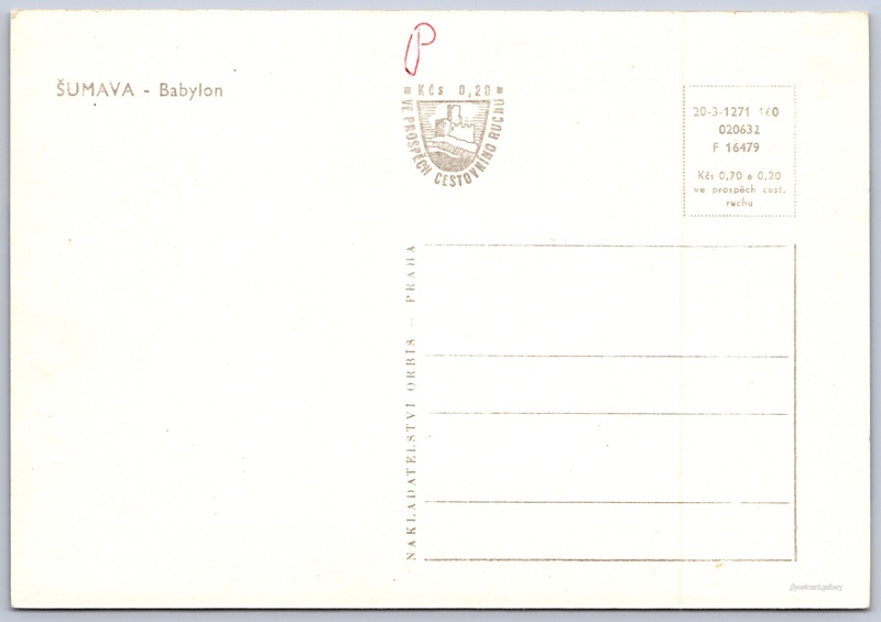 Postcard price: 0,70 Kčs (CSK) (+0,20 Kčs fee to support tourism)