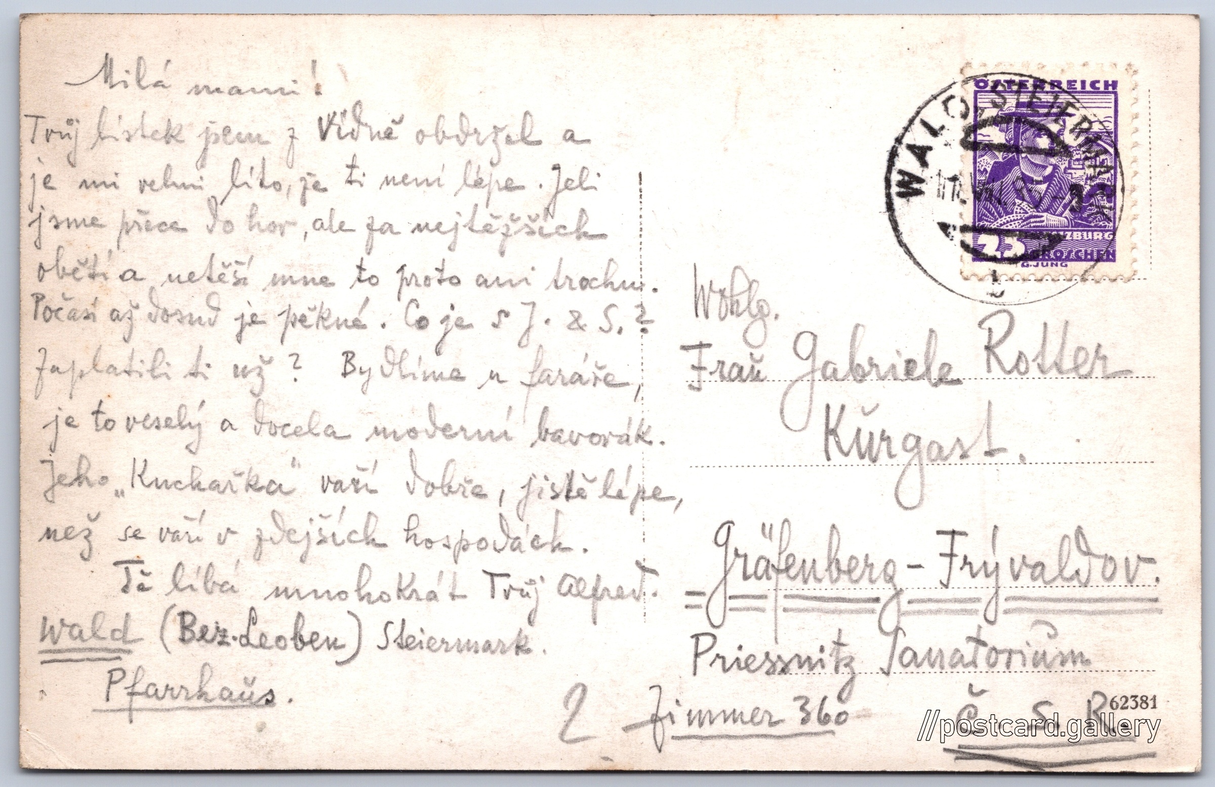 Zeyritzkampel bei Kallwang Pokud chcete vidět pohlednice ve vyšším rozlišení nebo zobrazovat jejich zadní stranu, tak se prosím nejdříve přihlašte Log in Register Zeyritzkampel bei Kallwang, Obersteiermark Language of printed text on postcard: German Zeiritzkampel (2125 m), Hora, výškový bod, Radmer, Rakousko show on map Estimated issue date of postcard: 1932 - 1935 Help us specify date of postcard publishing Postcard size (w x h) and shape: 134 x 87 mm (5.28" x 3.43"), rectangle Used postcard Prices: Paid stamps: 0,25 öS (ATS) Postcard codes: 26749 DiscussionAdd post Add new folder ... Manage folders ...