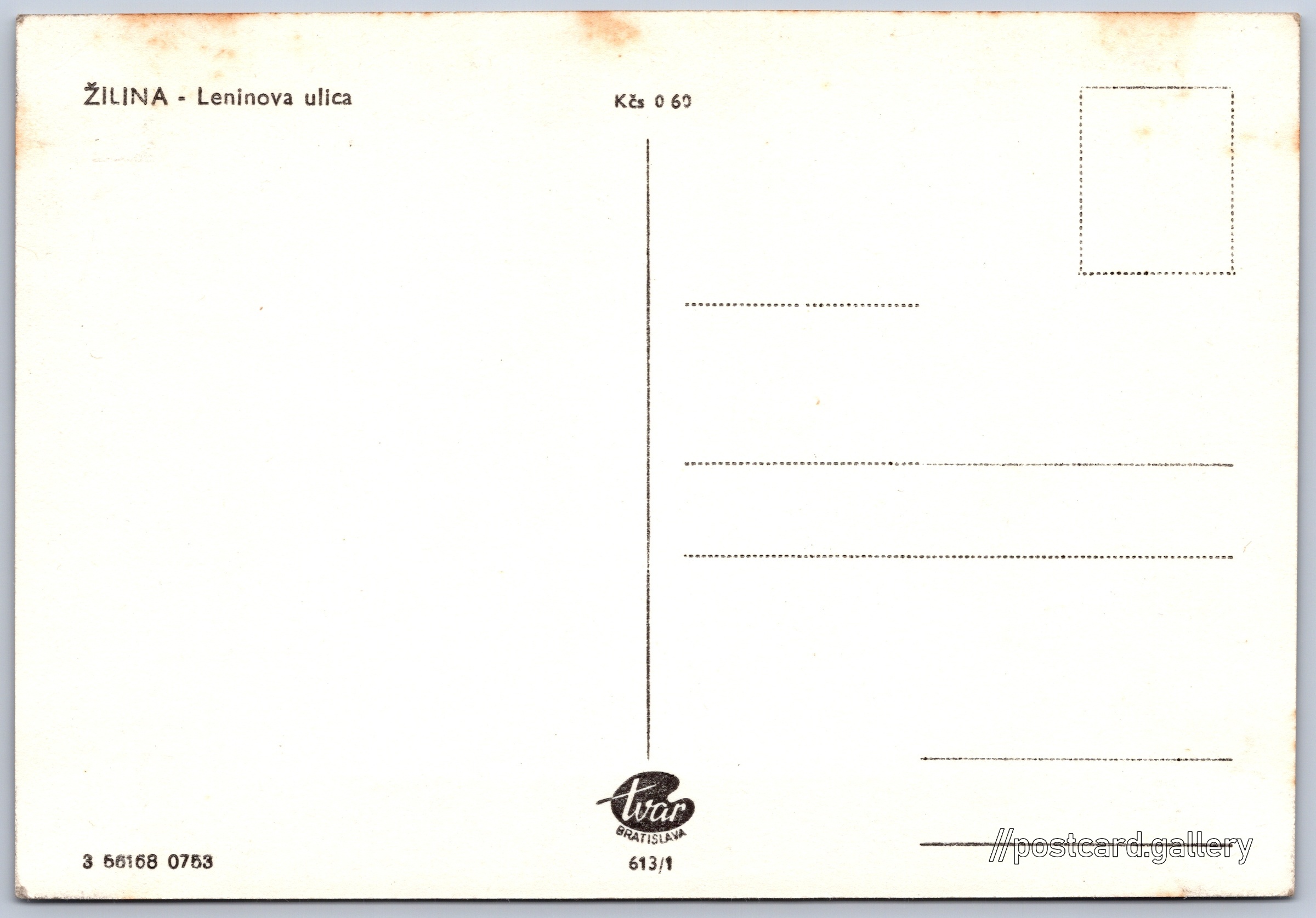 Postcard price: 0,60 Kčs (CSK)