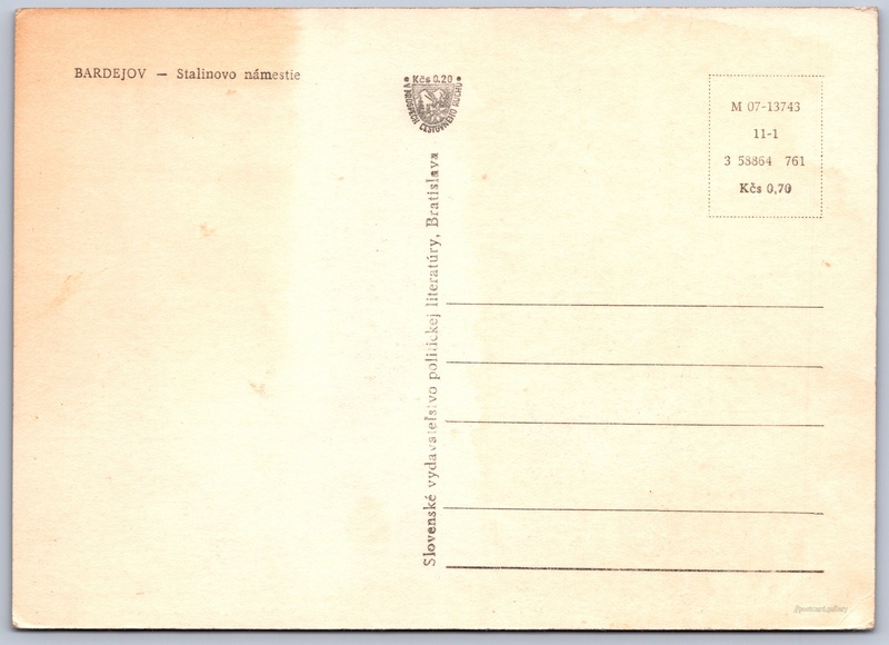 Bardějov, Stalinovo náměstí Pokud chcete vidět pohlednice ve vyšším rozlišení nebo zobrazovat jejich zadní stranu, tak se prosím nejdříve přihlašte Přihlásit Zaregistrovat BARDEJOV - Stalinovo námestie Jazyk tištěného textu na pohlednici: slovenština Radniční náměstí ukázat na mapě V blízkém okolí místa zobrazeného na pohlednici lze najít 5 jiných pohlednic. Zobrazit blízké pohlednice Vydavatel: VPL (Československo) Rok vydání pohlednice: červenec, 1961 Velikost (š x v) a tvar pohlednice: 145 x 103 mm (5.71" x 4.06"), obdélník Osoby spjaté s touto pohlednicí: Josif Vissarionovič Stalin(Jméno v názvu místa) Čistá pohlednice (neprošlá poštou) Ceny: Cena pohlednice: 0,70 Kčs (CSK) (+0,20 Kčs přípl. na tur. ruch) Kódy na pohlednici: M 07-13743 11-1 3 58864 761 DiskuseVložit příspěvek Přidat novou složku ... Spravovat složky ...