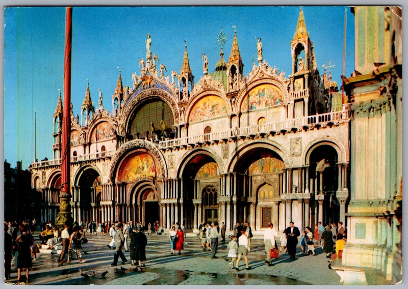 Benátky, bazilika sv. Marka Pokud chcete vidět pohlednice ve vyšším rozlišení nebo zobrazovat jejich zadní stranu, tak se prosím nejdříve přihlašte Přihlásit Zaregistrovat Ukázat zadní stranu pohlednice VENEZIA - Basilica di San MarcoVENISE - Basilique de St. MarcVENICE - St. Mark's basilicaVENEDIG - Hl. Markuskirche Jazyk tištěného textu na pohlednici: čeština Bazilika svatého Marka, Kostel, Benátky - Municipality 1 Venezia-Murano-Burano, Itálie ukázat na mapě Odhadované datum vydání pohlednice: 1967 - 1970 Pomozte nám zpřesnit rok vzniku pohlednice Velikost (š x v) a tvar pohlednice: 146 x 102 mm (5.75" x 4.02"), obdélník Prošlá poštou:Datum na razítku: 12.8.1970 Ceny: Vyplacené známky: 55 L (ITL) Kódy na pohlednici: 2043 DiskuseVložit příspěvek Přidat novou složku ... Spravovat složky ...