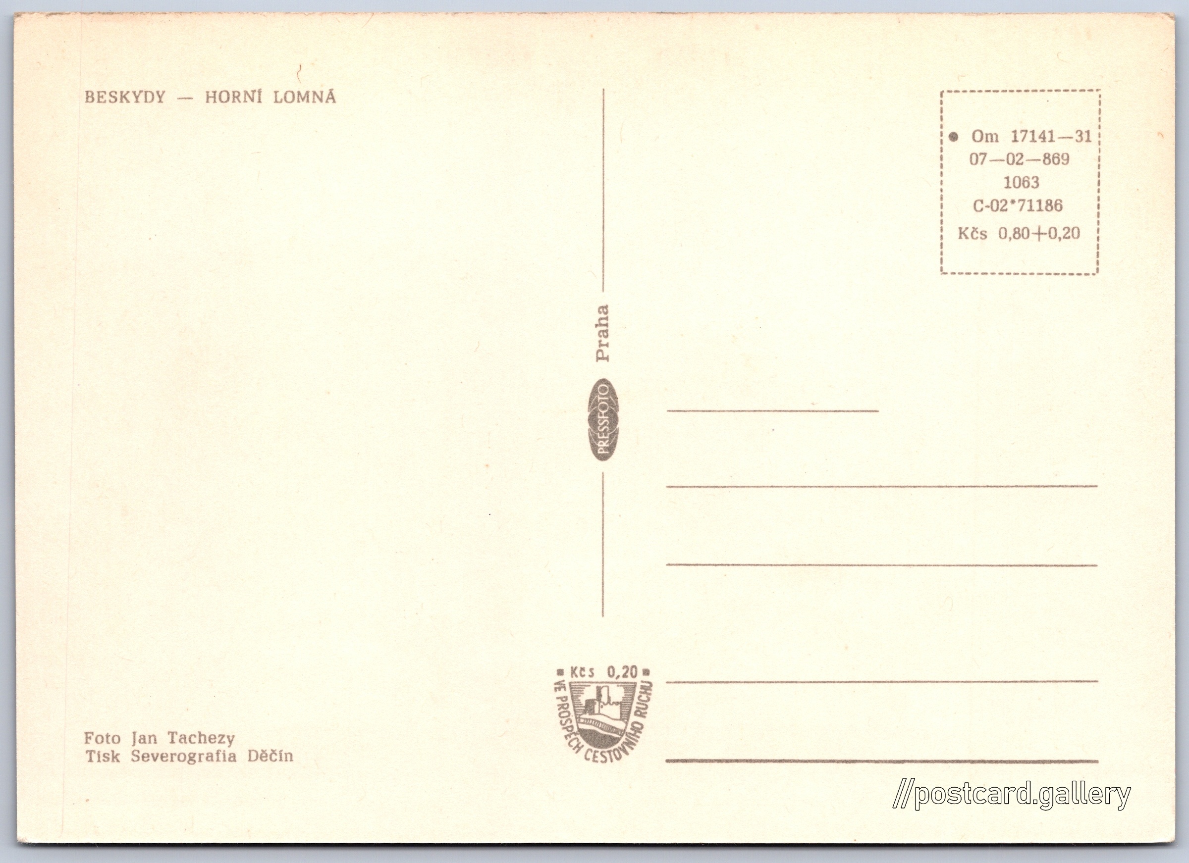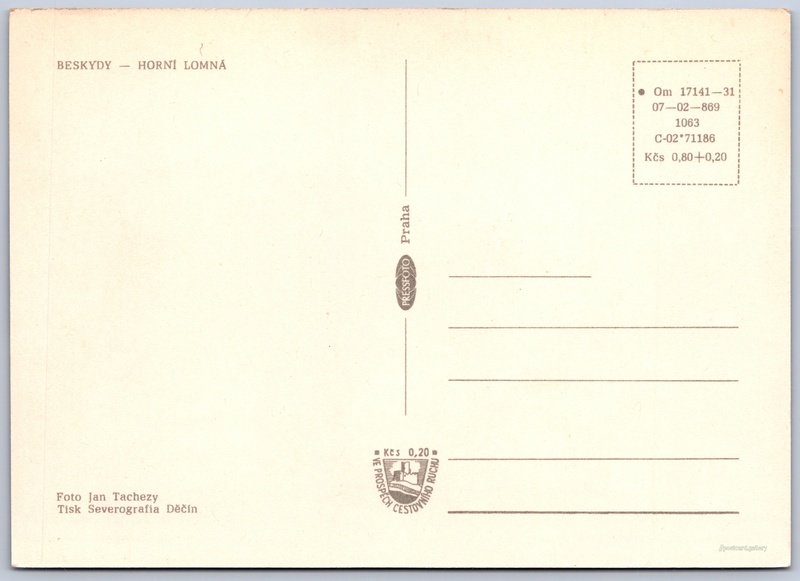 Cena pohlednice: 0,80 Kčs (CSK) (+0,20 Kčs přípl. na tur. ruch)