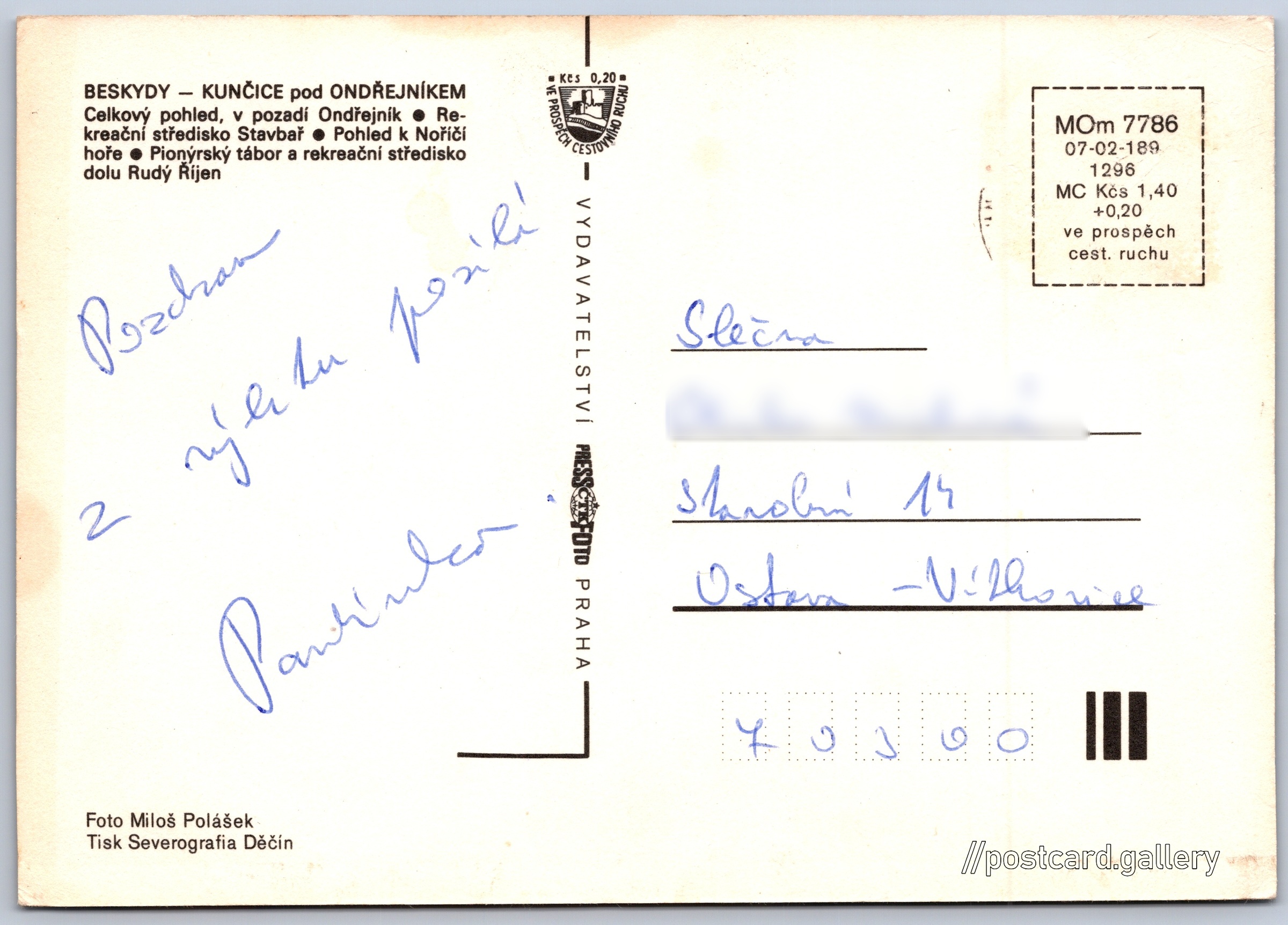 Beskydy, Kunčice pod Ondřejníkem Pokud chcete vidět pohlednice ve vyšším rozlišení nebo zobrazovat jejich zadní stranu, tak se prosím nejdříve přihlašte Přihlásit Zaregistrovat Beskydy - Kunčice pod Ondřejníkem BESKYDY - KUNČICE pod ONDŘEJNÍKEM- Celkový pohled, v pozadí Ondřejník- Rekreační středisko Stavbař- Pohled k Noříčí hoře- Pionýrský tábor a rekreační středisko dolu Rudý Říjen Jazyk tištěného textu na pohlednici: čeština Ondřejník (890 m), Hora, výškový bod, Metylovice, Česko ukázat na mapě Vydavatel: PressFoto Praha (Československo) Rok vydání pohlednice: 1981 Velikost (š x v) a tvar pohlednice: 148 x 104 mm (5.83" x 4.09"), obdélník Osoby spjaté s touto pohlednicí: Miloš Polášek(Autor fotografie) Prošlá poštou Ceny: Cena pohlednice: 1,40 Kčs (CSK) (+0,20 Kčs přípl. na tur. ruch) Kódy na pohlednici: MOm 7786 07-02-189 1296 DiskuseVložit příspěvek Přidat novou složku ... Spravovat složky ...