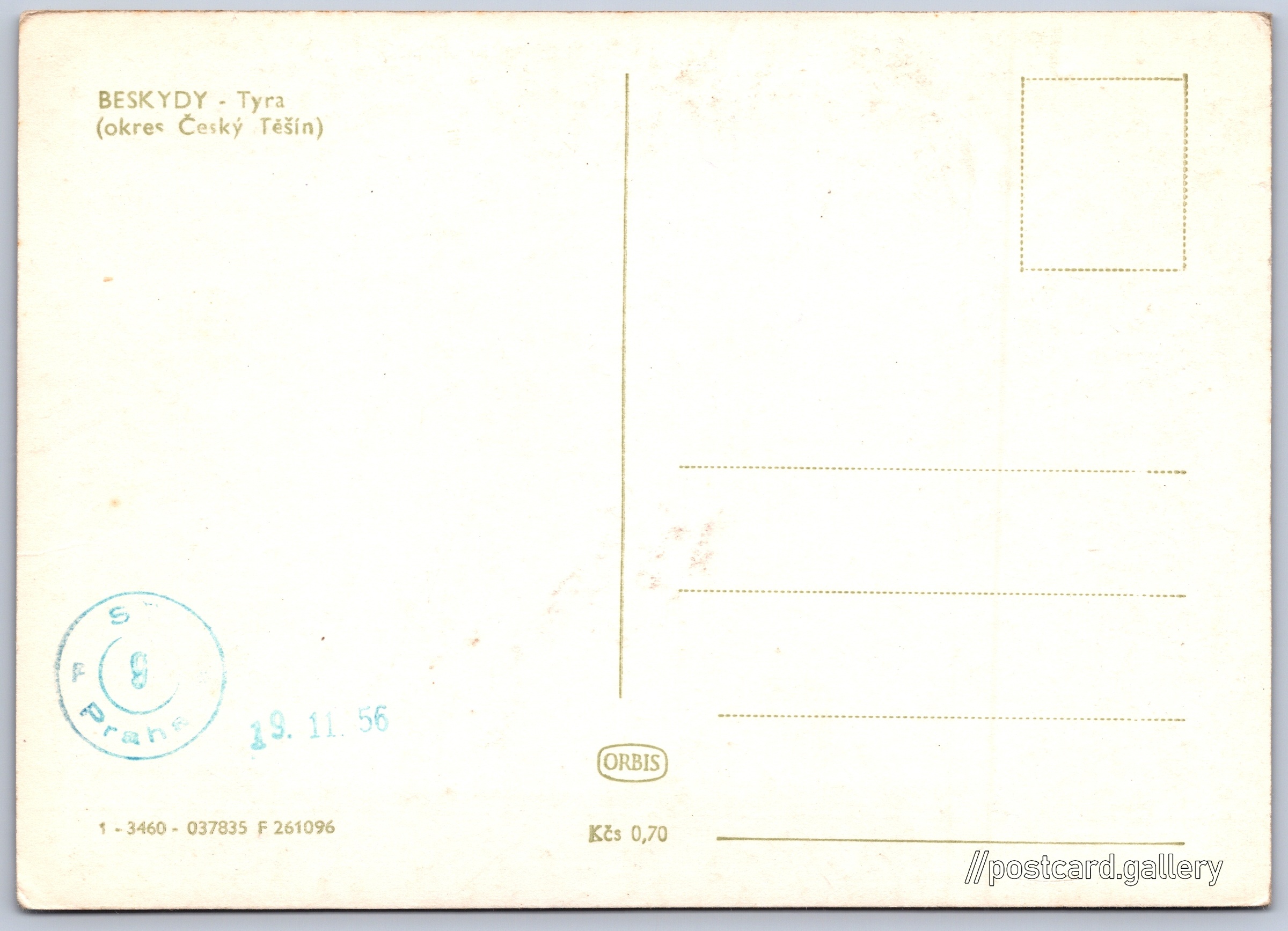 Beskydy, Tyra Pokud chcete vidět pohlednice ve vyšším rozlišení nebo zobrazovat jejich zadní stranu, tak se prosím nejdříve přihlašte Přihlásit Zaregistrovat BESKYDY - Tyra(okres Český Těšín) Jazyk tištěného textu na pohlednici: čeština Tyra, Část obce, Třinec, Česko ukázat na mapě Vydavatel: Nakladatelství Orbis (Československo) Odhadované datum vydání pohlednice: 1954 - 1956 Pomozte nám zpřesnit rok vzniku pohlednice Velikost (š x v) a tvar pohlednice: 146 x 103 mm (5.75" x 4.06"), obdélník Čistá pohlednice (neprošlá poštou) Ceny: Cena pohlednice: 0,70 Kčs (CSK) Kódy na pohlednici: 1-3460-037835 F 261096 DiskuseVložit příspěvek Přidat novou složku ... Spravovat složky ...