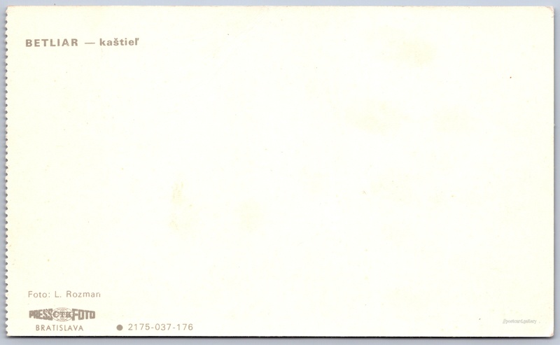 Betliar, zámek Pokud chcete vidět pohlednice ve vyšším rozlišení nebo zobrazovat jejich zadní stranu, tak se prosím nejdříve přihlašte Přihlásit Zaregistrovat BETLIAR - kaštieľ Jazyk tištěného textu na pohlednici: slovenština Kaštieľ Betliar, Muzeum, Šafárikova 10/8, Betliar, Slovensko ukázat na mapě V blízkém okolí místa zobrazeného na pohlednici lze najít 3 jiné pohlednice. Zobrazit blízké pohlednice Vydavatel: PressFoto Bratislava (Československo) Datum vydání není známo Pomozte nám odhadnout datum vzniku pohlednice Velikost (š x v) a tvar pohlednice: 148 x 89 mm (5.83" x 3.50"), obdélník Osoby spjaté s touto pohlednicí: Ladislav Rozman(Autor fotografie) Čistá pohlednice (neprošlá poštou) Kódy na pohlednici: 2175-037-176 DiskuseVložit příspěvek Přidat novou složku ... Spravovat složky ...