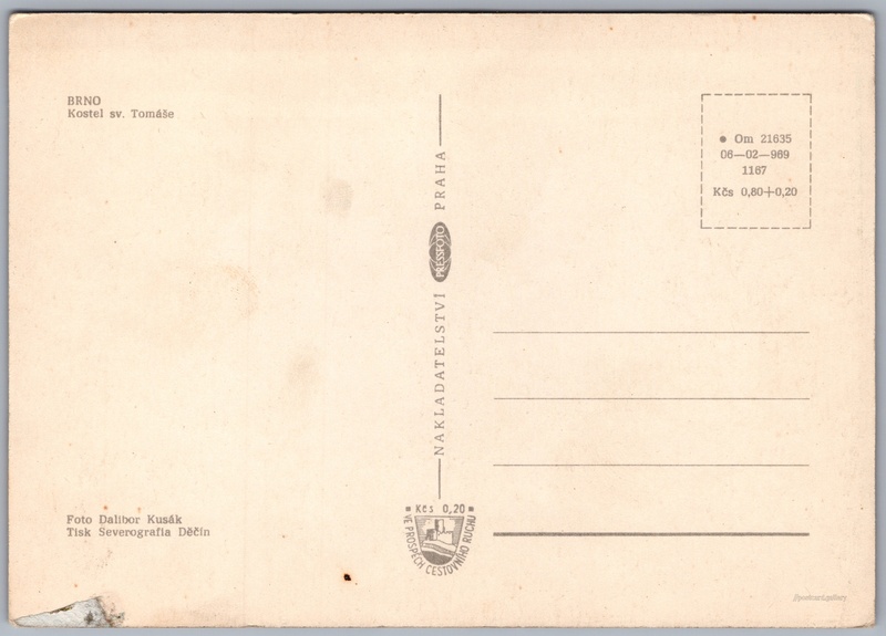 Cena pohlednice: 0,80 Kčs (CSK) (+0,20 Kčs přípl. na tur. ruch)