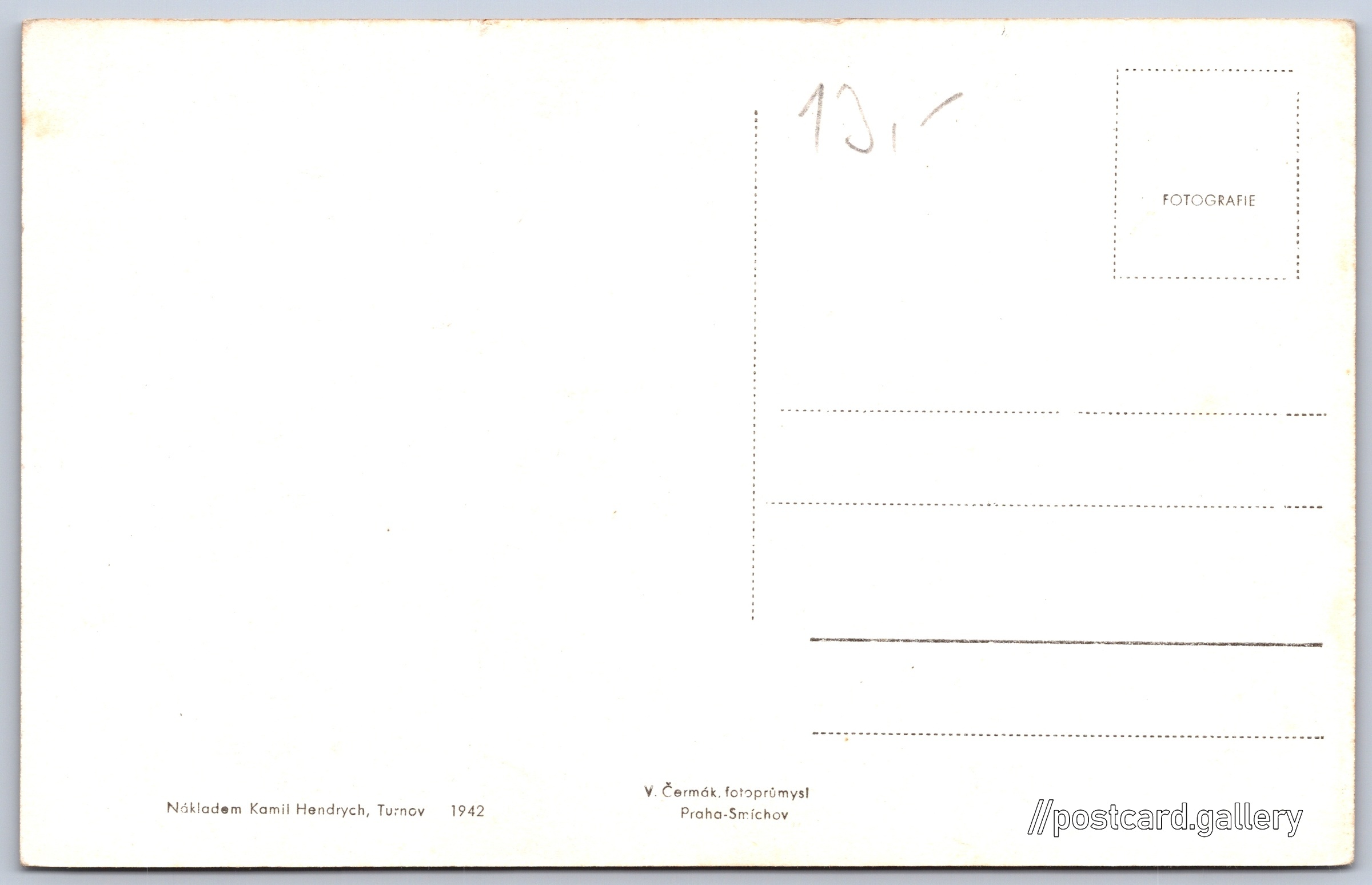 Český ráj, Malá skála Pokud chcete vidět pohlednice ve vyšším rozlišení nebo zobrazovat jejich zadní stranu, tak se prosím nejdříve přihlašte Přihlásit Zaregistrovat Český ráj. Malá skála. - Pantheon. Jazyk tištěného textu na pohlednici: čeština Malá Skála, Obec, Česko ukázat na mapě V blízkém okolí místa zobrazeného na pohlednici lze najít 2 jiné pohlednice. Zobrazit blízké pohlednice Vydavatel: Kamil Hendrych (Československo) Rok vydání pohlednice: 1942 Velikost (š x v) a tvar pohlednice: 139 x 89 mm (5.47" x 3.50"), obdélník Čistá pohlednice (neprošlá poštou) DiskuseVložit příspěvek Přidat novou složku ... Spravovat složky ...