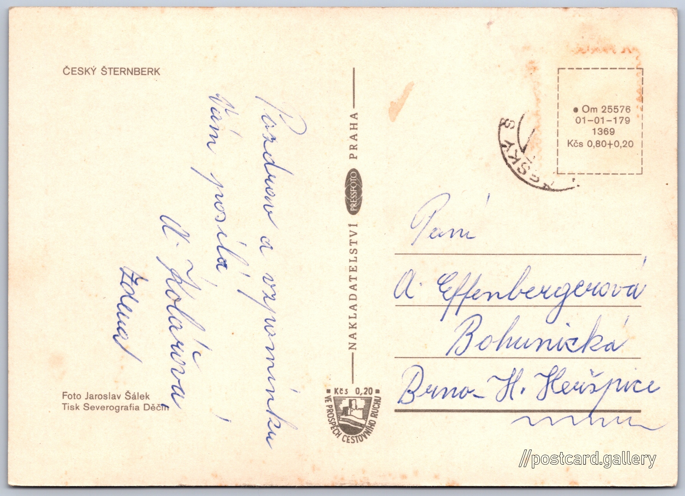 Cena pohlednice: 0,80 Kčs (CSK) (+0,20 Kčs přípl. na tur. ruch)