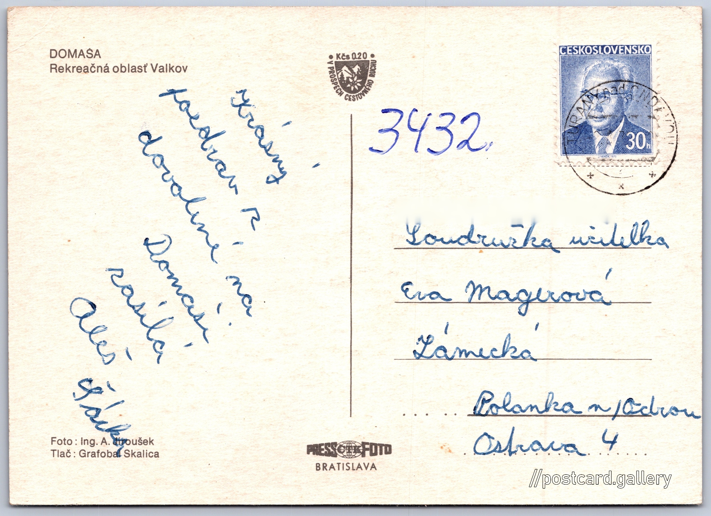Domaša Pokud chcete vidět pohlednice ve vyšším rozlišení nebo zobrazovat jejich zadní stranu, tak se prosím nejdříve přihlašte Přihlásit Zaregistrovat Domaša DOMAŠARekreačná oblasť Valkov Jazyk tištěného textu na pohlednici: slovenština Valkov ukázat na mapě Vydavatel: PressFoto Bratislava (Československo) Odhadované datum vydání pohlednice: 1972 - 1975 Pomozte nám zpřesnit rok vzniku pohlednice Velikost (š x v) a tvar pohlednice: 146 x 105 mm (5.75" x 4.13"), obdélník Osoby spjaté s touto pohlednicí: Alexander Jiroušek(Autor fotografie) Prošlá poštou Ceny: Příplatek na tur. ruch: 0,20 Kčs (CSK))Vyplacené známky: 0,30 Kčs (CSK) DiskuseVložit příspěvek Přidat novou složku ... Spravovat složky ...