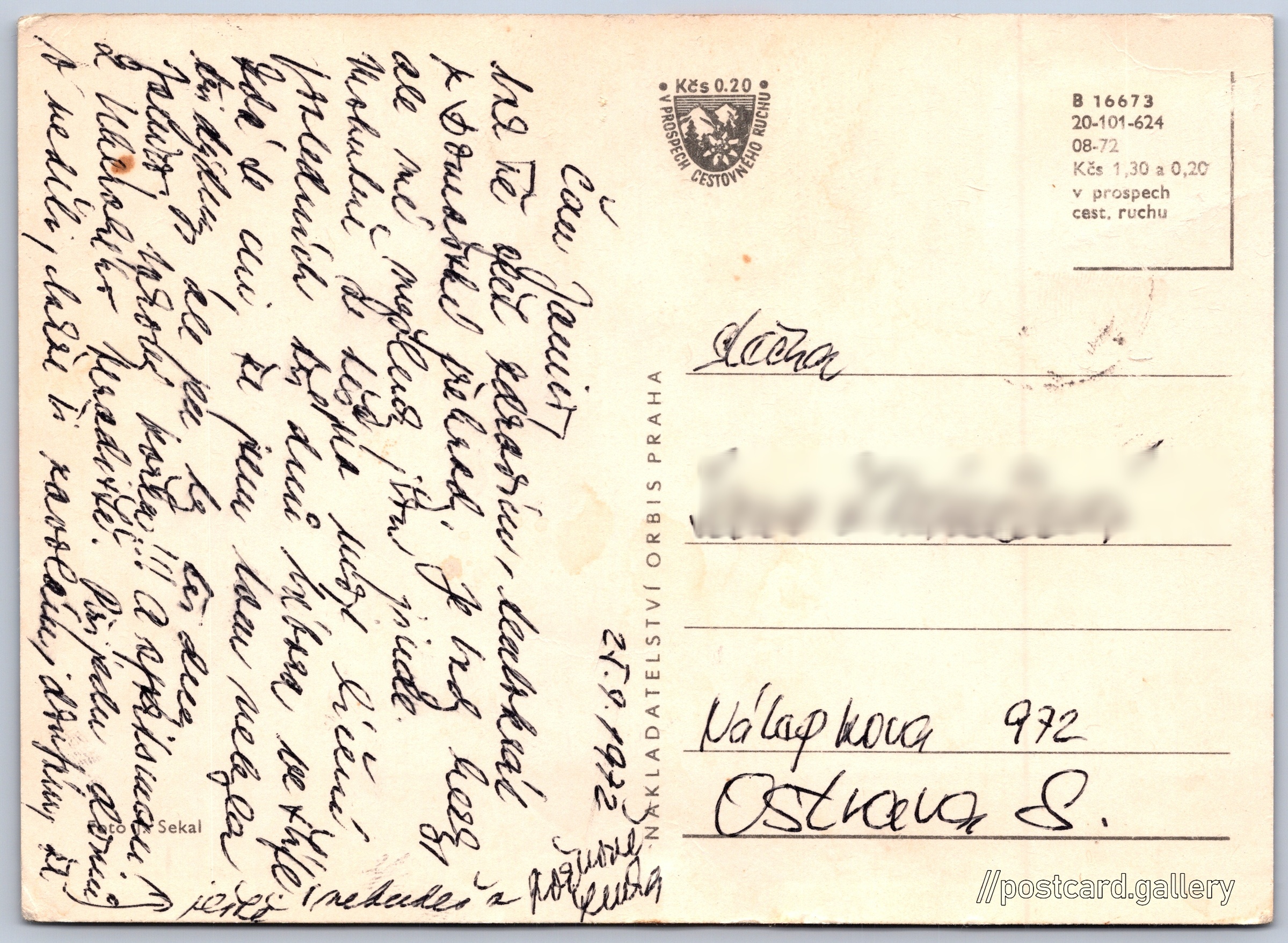 Cena pohlednice: 1,30 Kčs (CSK) (+0,20 Kčs přípl. na tur. ruch)