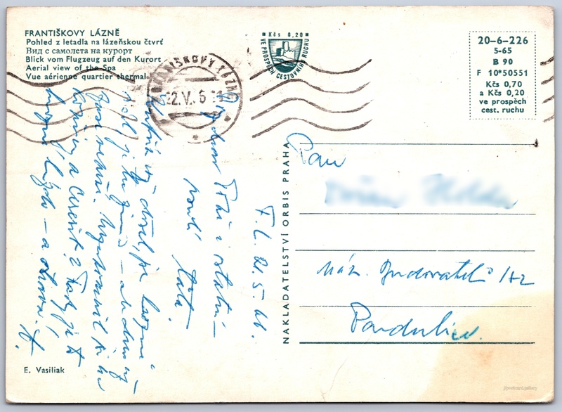 Jazyky tištěného textu na pohlednici: