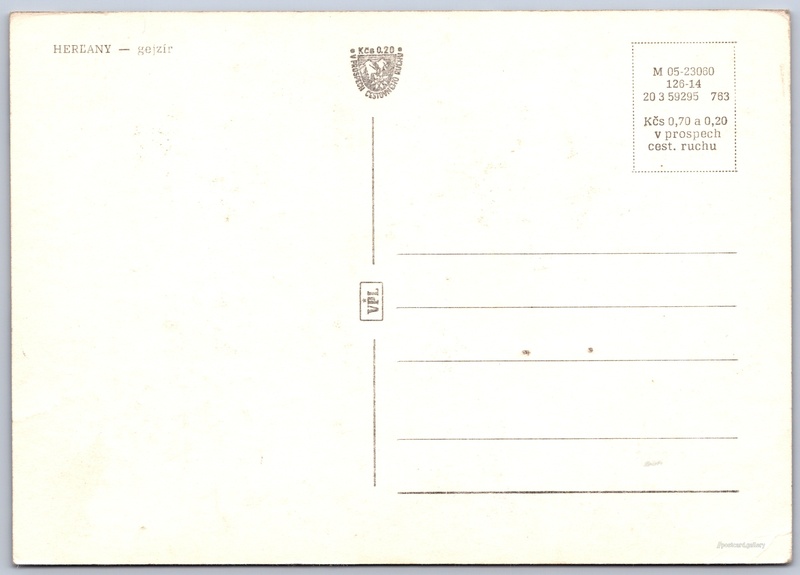 Cena pohlednice: 0,70 Kčs (CSK) (+0,20 Kčs přípl. na tur. ruch)