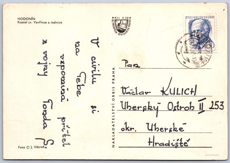 Hodonín, kostel sv. Vavřince Pokud chcete vidět pohlednice ve vyšším rozlišení nebo zobrazovat jejich zadní stranu, tak se prosím nejdříve přihlašte Přihlásit Zaregistrovat HODONÍNKostel sv. Vavřince a radnice Jazyk tištěného textu na pohlednici: čeština Kostel sv. Vavřince, Kostel, Masarykovo nám. 3538/2, Hodonín, okres Hodonín, Jihomoravský kraj, Česko ukázat na mapě V blízkém okolí místa zobrazeného na pohlednici lze najít 3 jiné pohlednice. Zobrazit blízké pohlednice Vydavatel: Nakladatelství Orbis (Československo) Datum vydání není známo Pomozte nám odhadnout datum vzniku pohlednice Velikost (š x v) a tvar pohlednice: 149 x 104 mm (5.87" x 4.09"), obdélník Osoby spjaté s touto pohlednicí: J. Větroň(Autor fotografie) Prošlá poštou Ceny: Příplatek na tur. ruch: 0,20 Kčs (CSK))Vyplacené známky: 0,30 Kčs (CSK) DiskuseVložit příspěvek Přidat novou složku ... Spravovat složky ...