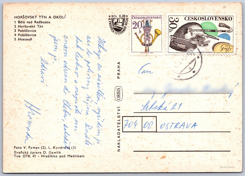 Horšovský Týn a okolí Pokud chcete vidět pohlednice ve vyšším rozlišení nebo zobrazovat jejich zadní stranu, tak se prosím nejdříve přihlašte Přihlásit Zaregistrovat Horšovský Týn a okolí HORŠOVSKÝ TÝN A OKOLÍ1 Bělá nad Radbuzou2 Horšovský Týn3 Poběžovice4 Poběžovice5 Hostouň Jazyk tištěného textu na pohlednici: čeština Bělá nad Radbuzou, Domažlice ukázat na mapě Vydavatel: Nakladatelství Orbis (Československo) Datum vydání není známo Pomozte nám odhadnout datum vzniku pohlednice Velikost (š x v) a tvar pohlednice: 148 x 105 mm (5.83" x 4.13"), obdélník Osoby spjaté s touto pohlednicí: Vladimír Fyman(Autor fotografie) L. Kyndrová(Autor fotografie) D. Gawlik(Design pohlednice) Prošlá poštou Ceny: Příplatek na tur. ruch: 0,20 Kčs (CSK))Vyplacené známky: 0,50 Kčs (CSK) DiskuseVložit příspěvek Přidat novou složku ... Spravovat složky ...