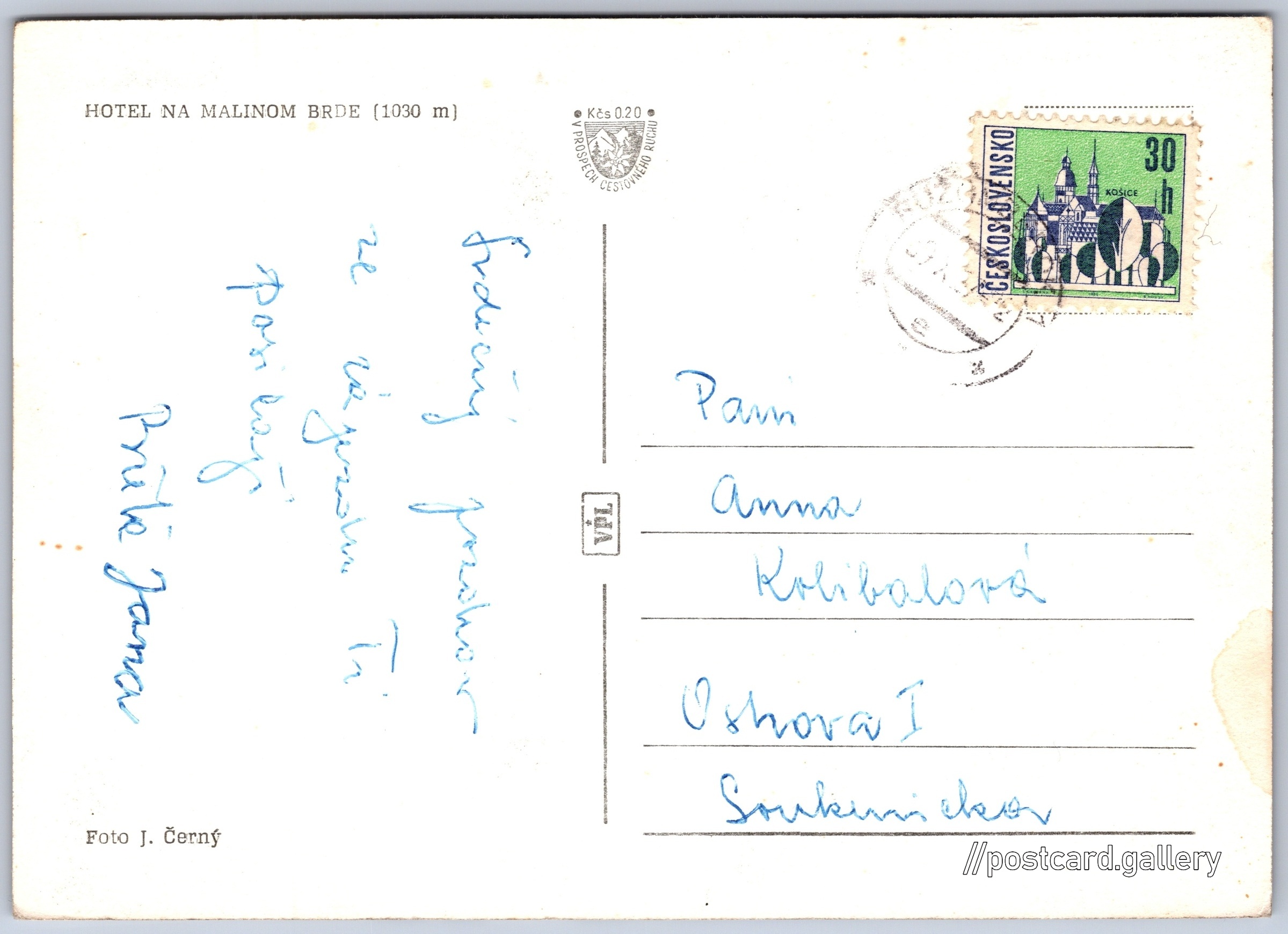 Hotel na Malinom Brde Pokud chcete vidět pohlednice ve vyšším rozlišení nebo zobrazovat jejich zadní stranu, tak se prosím nejdříve přihlašte Přihlásit Zaregistrovat HOTEL NA MALINOM BRDE (1030 m) Jazyk tištěného textu na pohlednici: slovenština Malinô Brdo ukázat na mapě Vydavatel: VPL (Československo) Odhadované datum vydání pohlednice: 1962 - 1964 Pomozte nám zpřesnit rok vzniku pohlednice Velikost (š x v) a tvar pohlednice: 143 x 102 mm (5.63" x 4.02"), obdélník Osoby spjaté s touto pohlednicí: J. Černý(Autor fotografie) Prošlá poštou Ceny: Příplatek na tur. ruch: 0,20 Kčs (CSK))Vyplacené známky: 0,30 Kčs (CSK) DiskuseVložit příspěvek Přidat novou složku ... Spravovat složky ...