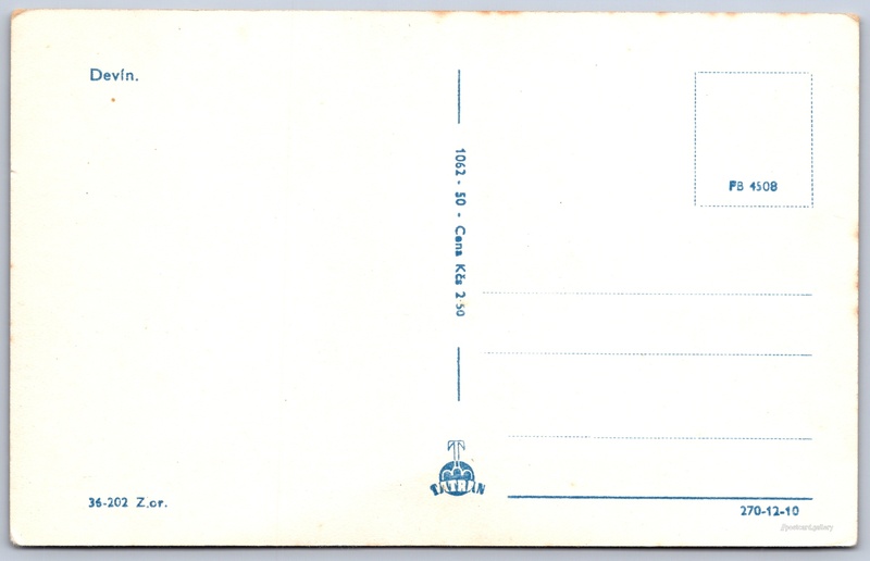 Hrad Devín, panenská věž Pokud chcete vidět pohlednice ve vyšším rozlišení nebo zobrazovat jejich zadní stranu, tak se prosím nejdříve přihlašte Přihlásit Zaregistrovat Devín. Jazyk tištěného textu na pohlednici: slovenština Slovanské nábrežie ukázat na mapě V blízkém okolí místa zobrazeného na pohlednici lze najít 4 jiné pohlednice. Zobrazit blízké pohlednice Vydavatel: Tatran (Československo) Datum vydání není známo Pomozte nám odhadnout datum vzniku pohlednice Velikost (š x v) a tvar pohlednice: 137 x 87 mm (5.39" x 3.43"), obdélník Čistá pohlednice (neprošlá poštou) Ceny: Cena pohlednice: 2,50 Kčs (CSK) Kódy na pohlednici: FB 4508 1062 50 36-202 Z.or. DiskuseVložit příspěvek Přidat novou složku ... Spravovat složky ...
