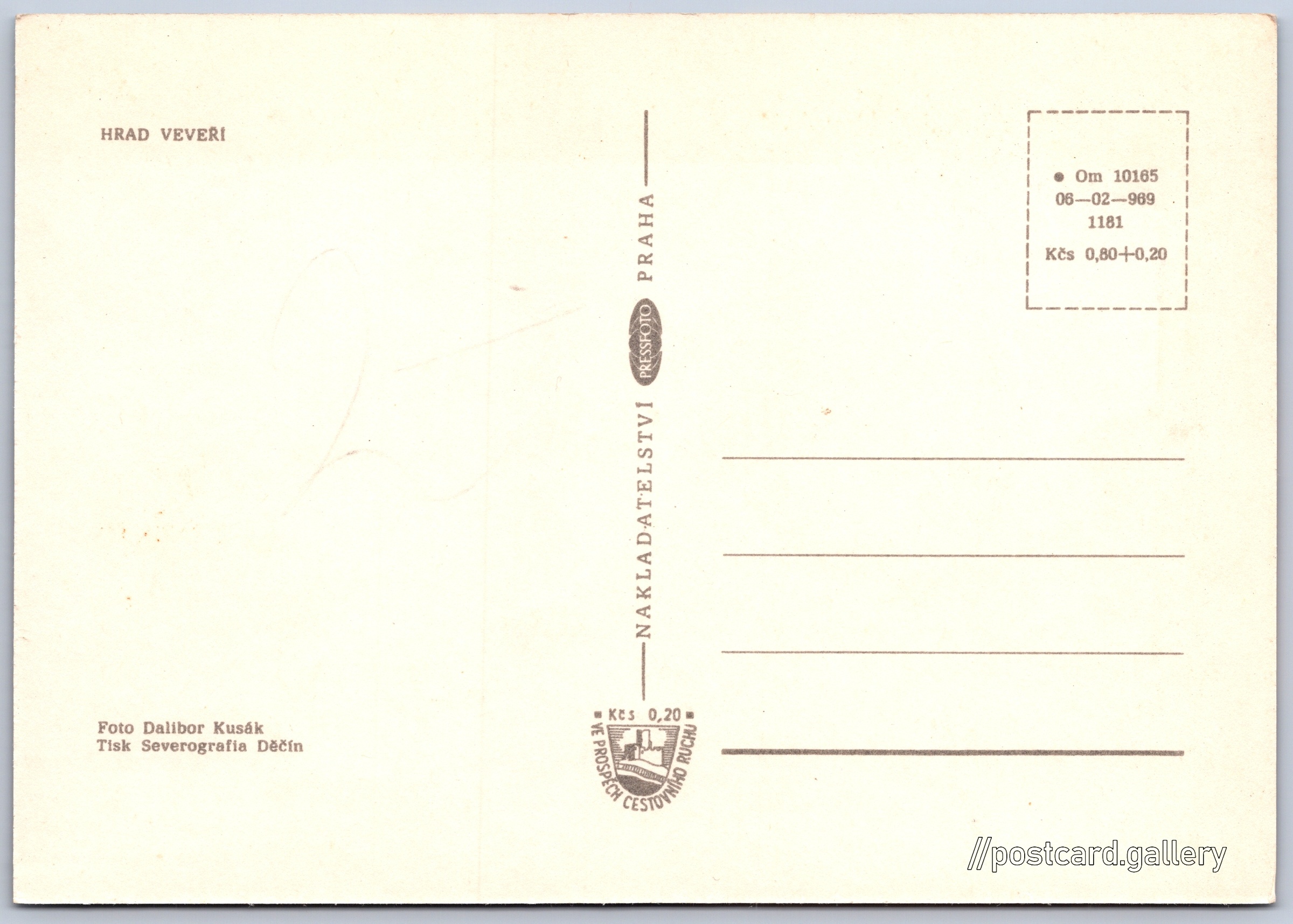 Cena pohlednice: 0,80 Kčs (CSK) (+0,20 Kčs přípl. na tur. ruch)