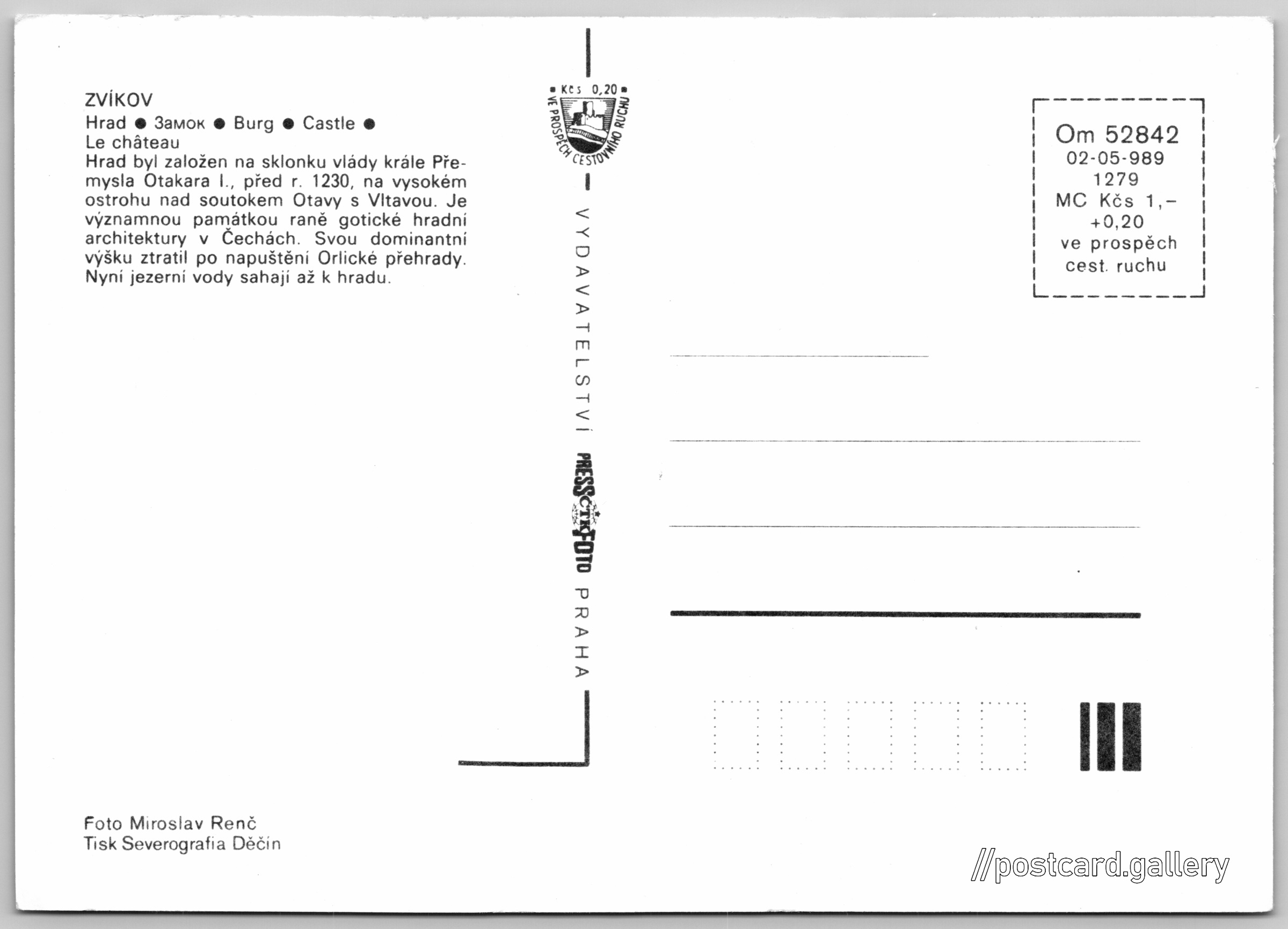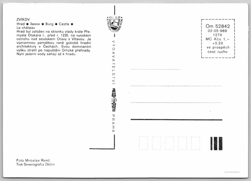 Jazyky tištěného textu na pohlednici: