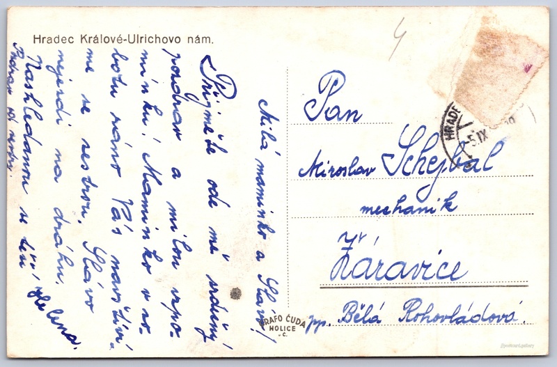 Hradec Králove, Ulrichovo náměstí Pokud chcete vidět pohlednice ve vyšším rozlišení nebo zobrazovat jejich zadní stranu, tak se prosím nejdříve přihlašte Přihlásit Zaregistrovat Hradec Králové - Ulrichovo nám. Jazyk tištěného textu na pohlednici: čeština Gočárova třída, Hradec Králové, Hradec Králové ukázat na mapě Vydavatel: Grafo Čuda Holice (Československo) Datum vydání není známo Pomozte nám odhadnout datum vzniku pohlednice Velikost (š x v) a tvar pohlednice: 139 x 90 mm (5.47" x 3.54"), obdélník Prošlá poštou DiskuseVložit příspěvek Přidat novou složku ... Spravovat složky ...