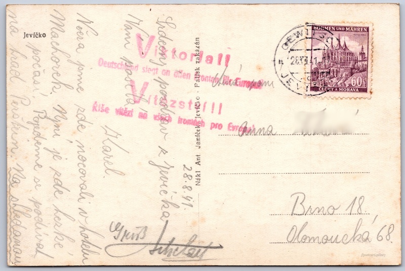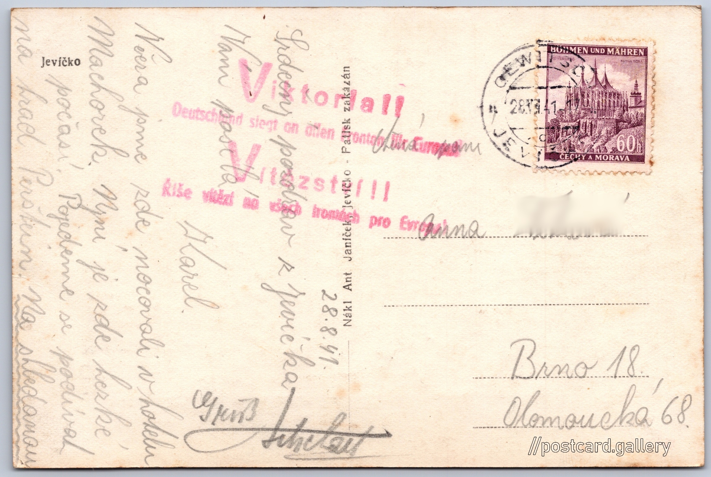 Jevíčko, letecký pohled Pokud chcete vidět pohlednice ve vyšším rozlišení nebo zobrazovat jejich zadní stranu, tak se prosím nejdříve přihlašte Přihlásit Zaregistrovat Jevíčko Jazyk tištěného textu na pohlednici: čeština Jevíčko, Město, Česko ukázat na mapě Vydavatel: Ant. Janíček (Československo) Odhadované datum vydání pohlednice: 1938 - 1941 Pomozte nám zpřesnit rok vzniku pohlednice Velikost (š x v) a tvar pohlednice: 138 x 92 mm (5.43" x 3.62"), obdélník Prošlá poštou:Datum na razítku: 28.8.1941Datum napsání pohledu: 28.8.1941 Ceny: Vyplacené známky: 0,60 Kčs (CSK) DiskuseVložit příspěvek Přidat novou složku ... Spravovat složky ...