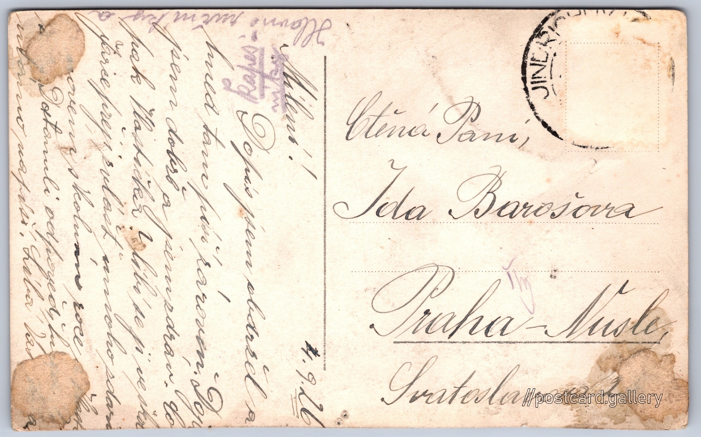 Jindřichův Hradec, zámek Pokud chcete vidět pohlednice ve vyšším rozlišení nebo zobrazovat jejich zadní stranu, tak se prosím nejdříve přihlašte Přihlásit Zaregistrovat Jindř. Hradec. - Zámek. Jazyk tištěného textu na pohlednici: čeština Pod Vrchy, Jindřichův Hradec, Jindřichův Hradec ukázat na mapě V blízkém okolí místa zobrazeného na pohlednici lze najít 6 jiných pohlednic. Zobrazit blízké pohlednice Odhadované datum vydání pohlednice: 1923 - 1926 Pomozte nám zpřesnit rok vzniku pohlednice Velikost (š x v) a tvar pohlednice: 138 x 86 mm (5.43" x 3.39"), obdélník Prošlá poštou:Datum napsání pohledu: 4.9.1926 Kódy na pohlednici: J.B.J.H. 5745 b DiskuseVložit příspěvek Přidat novou složku ... Spravovat složky ...