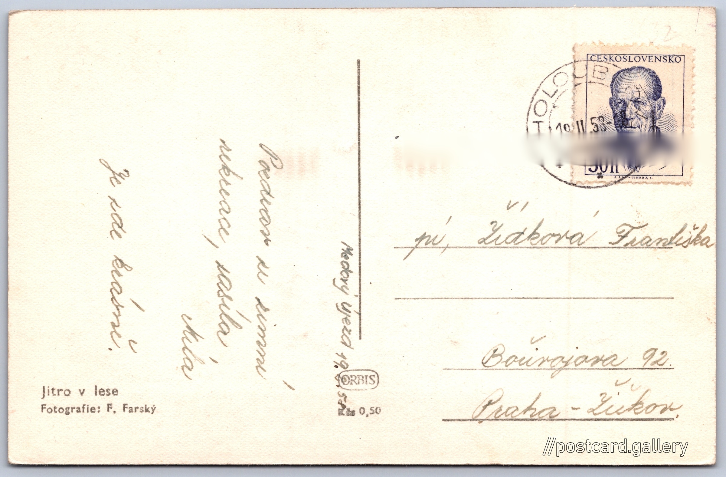 Jitro v lese Pokud chcete vidět pohlednice ve vyšším rozlišení nebo zobrazovat jejich zadní stranu, tak se prosím nejdříve přihlašte Přihlásit Zaregistrovat Jitro v lese Jazyk tištěného textu na pohlednici: čeština Vydavatel: Nakladatelství Orbis (Československo) Odhadované datum vydání pohlednice: 1955 - 1958 Pomozte nám zpřesnit rok vzniku pohlednice Velikost (š x v) a tvar pohlednice: 136 x 88 mm (5.35" x 3.46"), obdélník Osoby spjaté s touto pohlednicí: Fr. Farský(Autor fotografie) Prošlá poštou:Datum na razítku: 19.2.1958Datum napsání pohledu: 19.2.1958 Ceny: Cena pohlednice: 0,50 Kčs (CSK)Vyplacené známky: 0,30 Kčs (CSK) DiskuseVložit příspěvek Přidat novou složku ... Spravovat složky ...