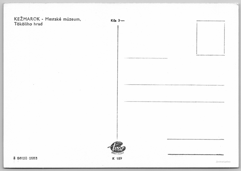 Kežmarok, městské muzeum Pokud chcete vidět pohlednice ve vyšším rozlišení nebo zobrazovat jejich zadní stranu, tak se prosím nejdříve přihlašte Přihlásit Zaregistrovat KEŽMAROK - Mestské múzeum, Tököliho hrad Jazyk tištěného textu na pohlednici: slovenština Hradné námestie ukázat na mapě V blízkém okolí místa zobrazeného na pohlednici lze najít 1 jinou pohlednici. Zobrazit blízké pohlednice Vydavatel: Tvar Bratislava (Československo) Rok vydání pohlednice: květen, 1953 Velikost (š x v) a tvar pohlednice: 148 x 103 mm (5.83" x 4.06"), obdélník Čistá pohlednice (neprošlá poštou) Ceny: Cena pohlednice: 3,00 Kčs (CSK) Kódy na pohlednici: 3 56128 0553 K 189 DiskuseVložit příspěvek Přidat novou složku ... Spravovat složky ...