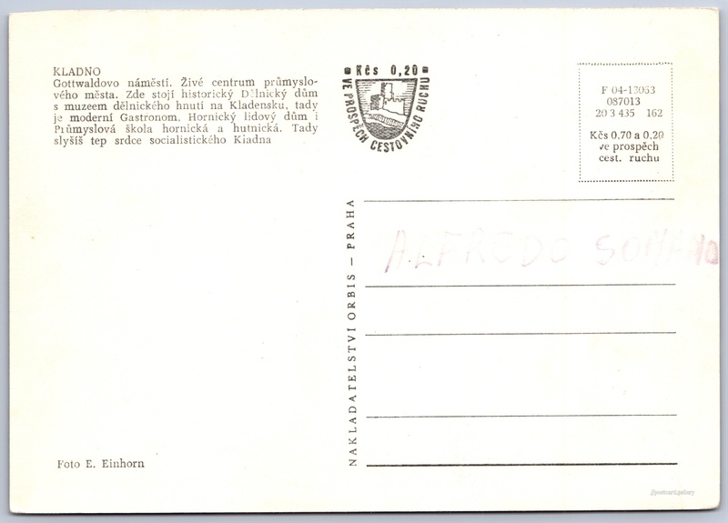 Cena pohlednice: 0,70 Kčs (CSK) (+0,20 Kčs přípl. na tur. ruch)