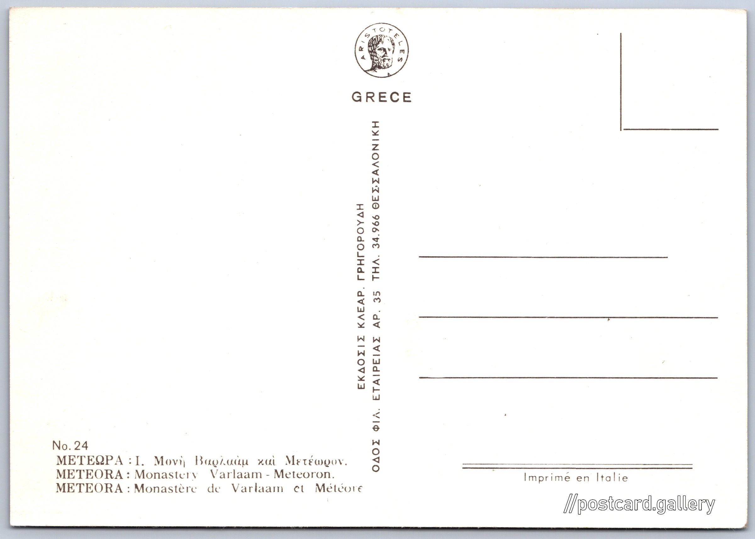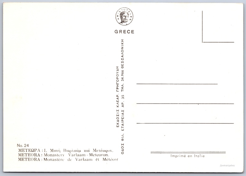 Klášter v Meteoře Pokud chcete vidět pohlednice ve vyšším rozlišení nebo zobrazovat jejich zadní stranu, tak se prosím nejdříve přihlašte Přihlásit Zaregistrovat ΜΕΤΕΩΡΑ : Ι. Μονὴ Βαρλαὰμ καὶ Μετέωρον.METEORA : Monastery Varlaam - Meteoron.METEORA: Monastère de Varlaam et Météore Jazyky tištěného textu na pohlednici: řečtina, angličtina, francouzština Moni Varlaam, Klášter, Meteora Municipality, Řecko ukázat na mapě Vydavatel: Grigoroudi (Řecko) Datum vydání není známo Pomozte nám odhadnout datum vzniku pohlednice Velikost (š x v) a tvar pohlednice: 146 x 102 mm (5.75" x 4.02"), obdélník Čistá pohlednice (neprošlá poštou) Kódy na pohlednici: 24 DiskuseVložit příspěvek Přidat novou složku ... Spravovat složky ...