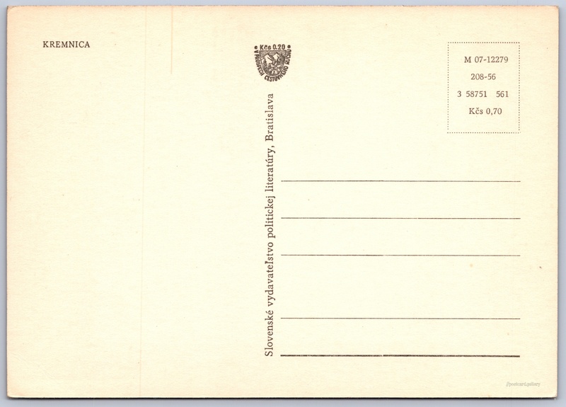 Cena pohlednice: 0,70 Kčs (CSK) (+0,20 Kčs přípl. na tur. ruch)