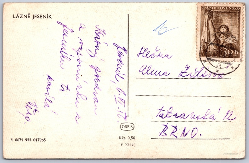 Cena pohlednice: 0,50 Kčs (CSK)