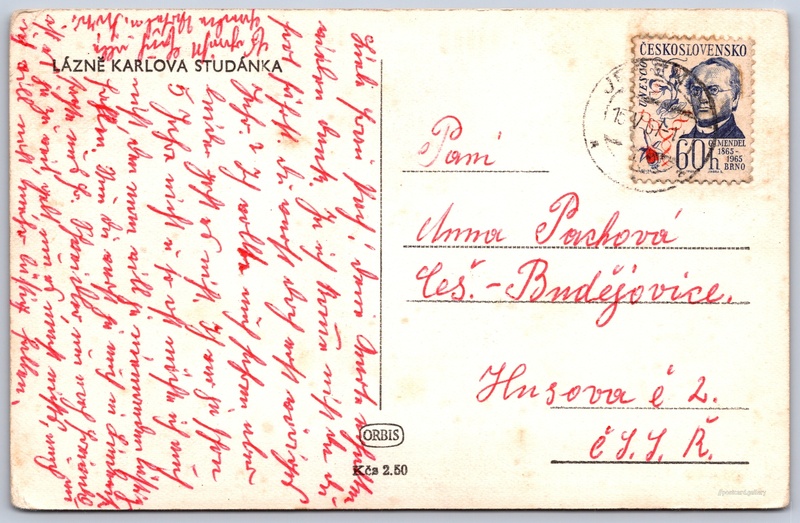 Lázně Karlova Studánka Pokud chcete vidět pohlednice ve vyšším rozlišení nebo zobrazovat jejich zadní stranu, tak se prosím nejdříve přihlašte Přihlásit Zaregistrovat LÁZNĚ KARLOVA STUDÁNKA Jazyk tištěného textu na pohlednici: čeština Karlova Studánka, Obec, Česko ukázat na mapě Vydavatel: Nakladatelství Orbis (Československo) Odhadované datum vydání pohlednice: 1948 - 1953 Pomozte nám zpřesnit rok vzniku pohlednice Velikost (š x v) a tvar pohlednice: 140 x 91 mm (5.51" x 3.58"), obdélník Prošlá poštou:Datum na razítku: 15.5.1967 Ceny: Cena pohlednice: 2,50 Kčs (CSK)Vyplacené známky: 0,60 Kčs (CSK) DiskuseVložit příspěvek Přidat novou složku ... Spravovat složky ...