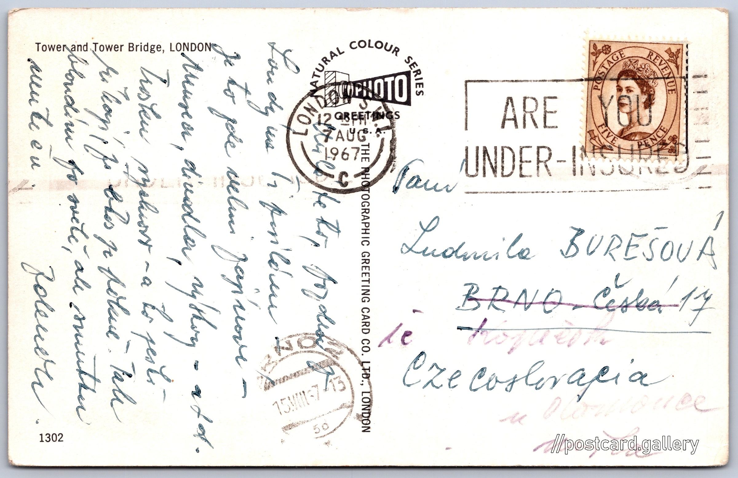 Jazyk tištěného textu na pohlednici:
