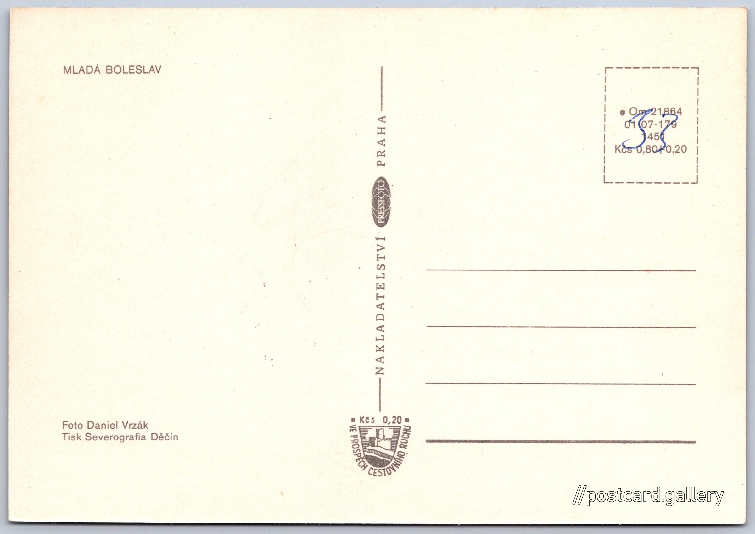 Cena pohlednice: 0,80 Kčs (CSK) (+0,20 Kčs přípl. na tur. ruch)