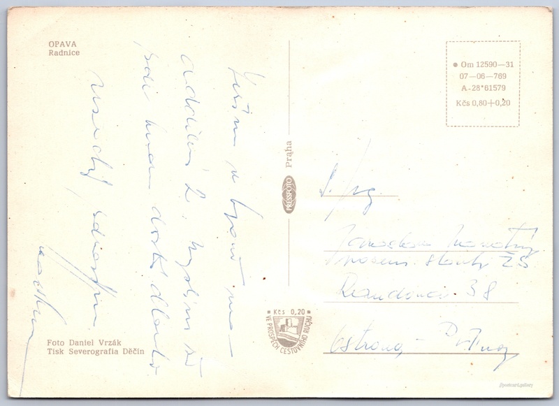 Cena pohlednice: 0,80 Kčs (CSK) (+0,20 Kčs přípl. na tur. ruch)