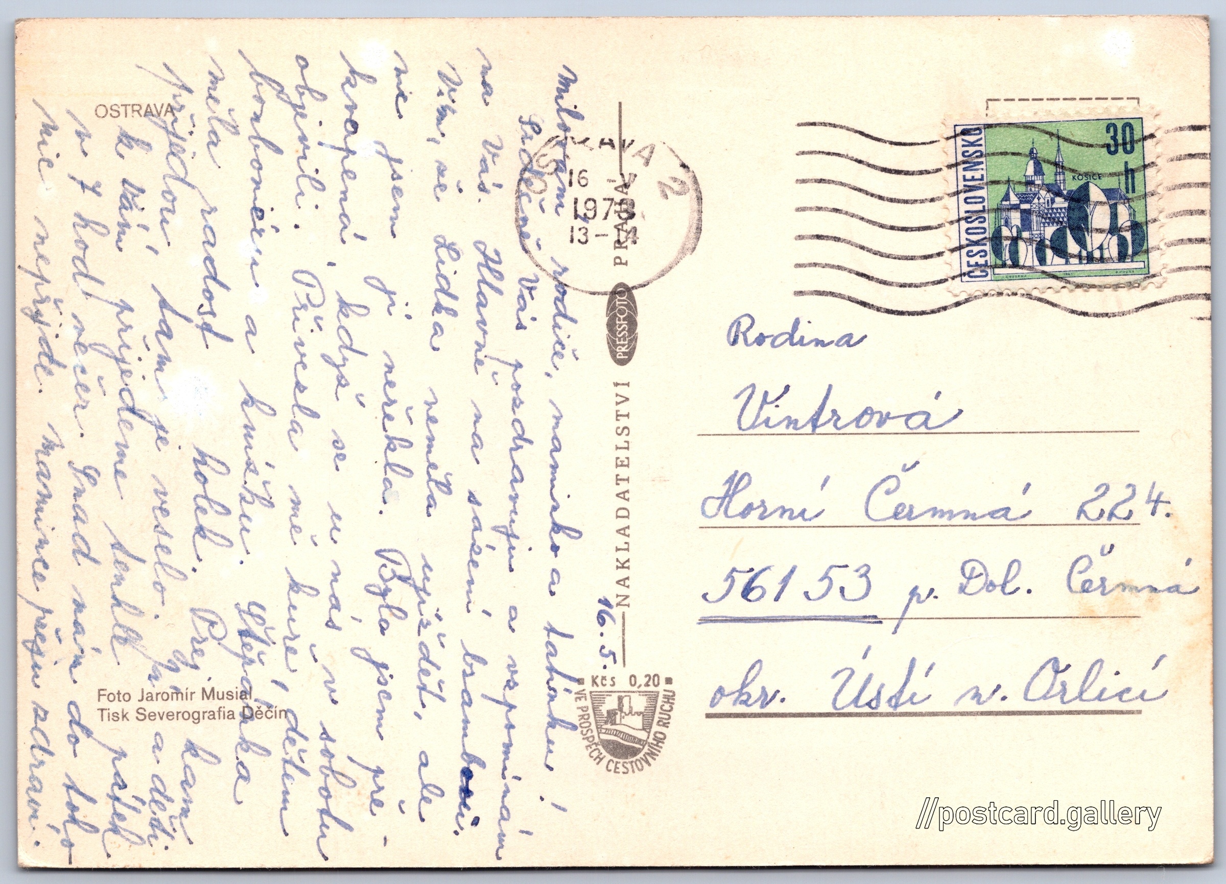 Jazyk tištěného textu na pohlednici: